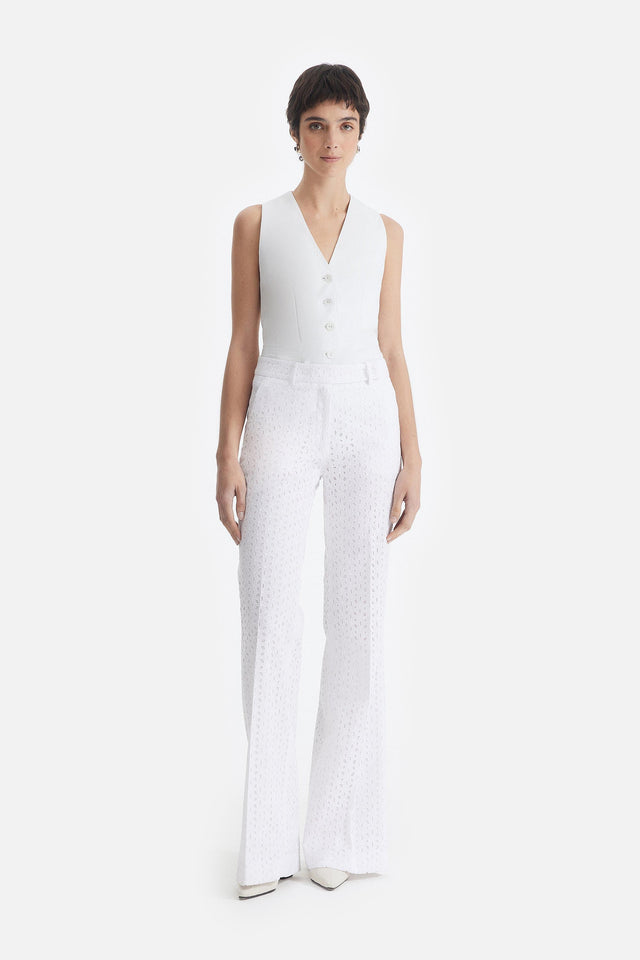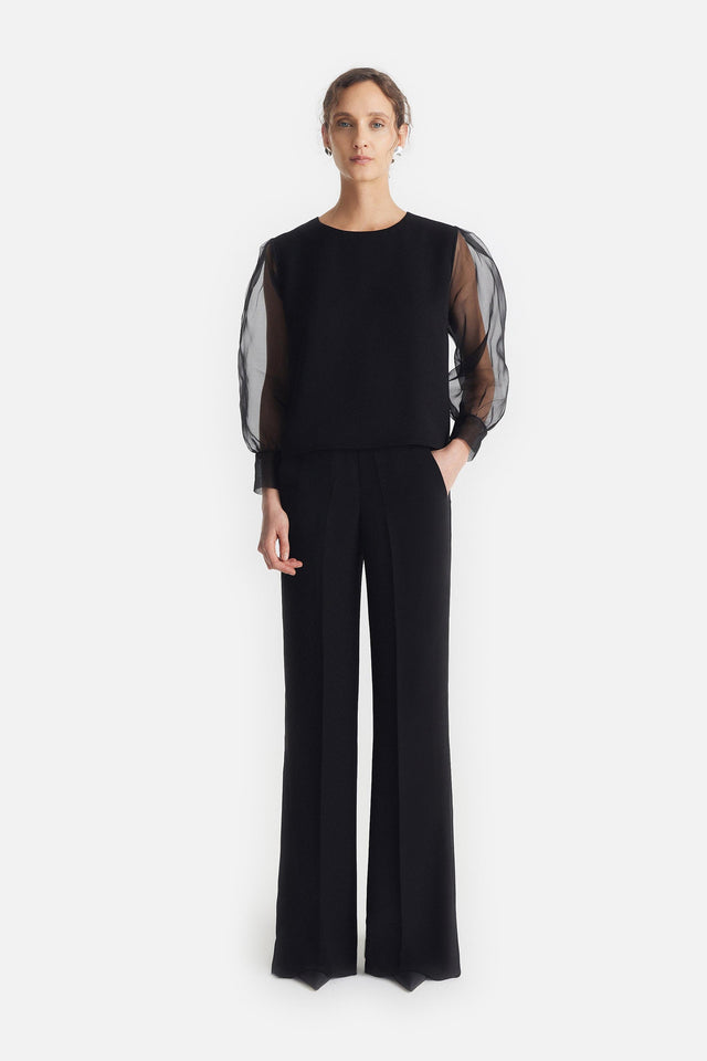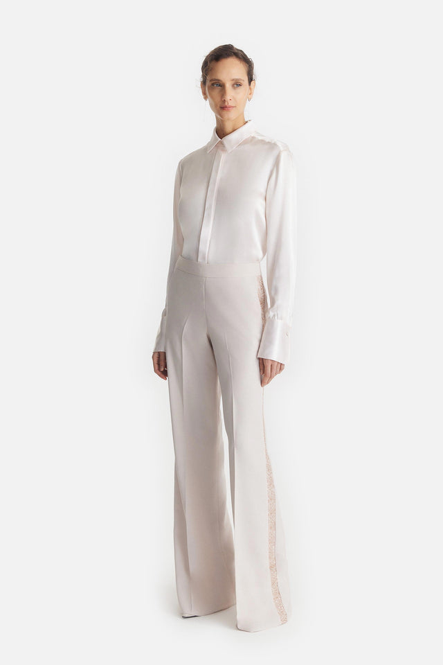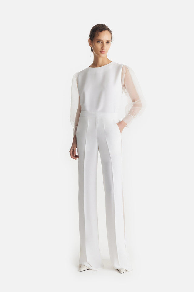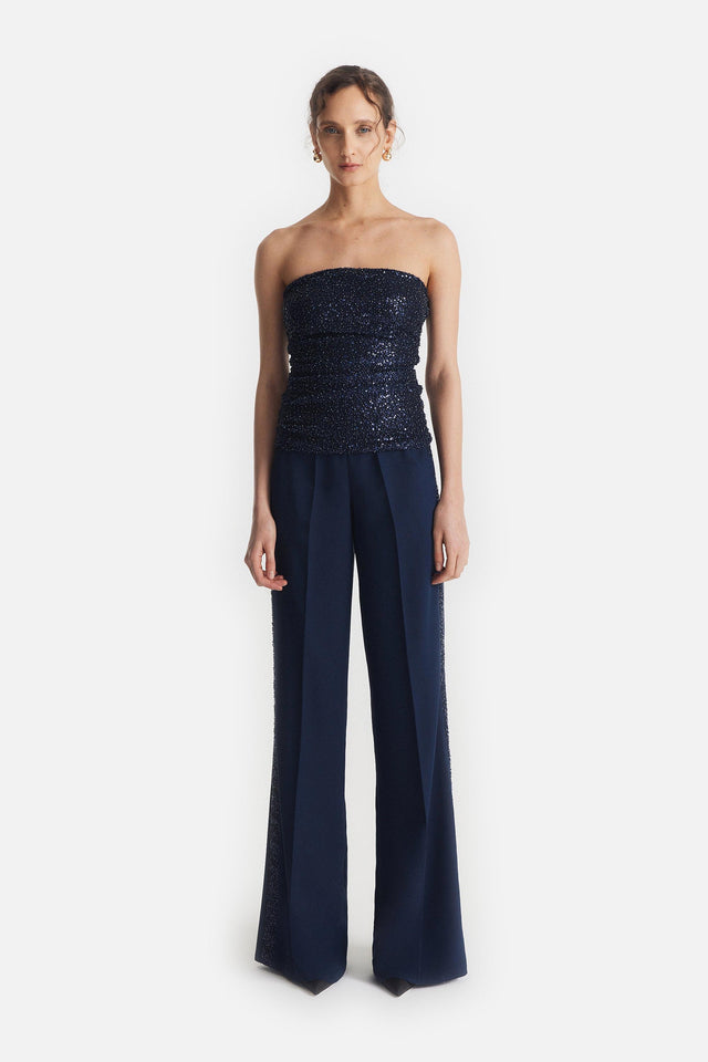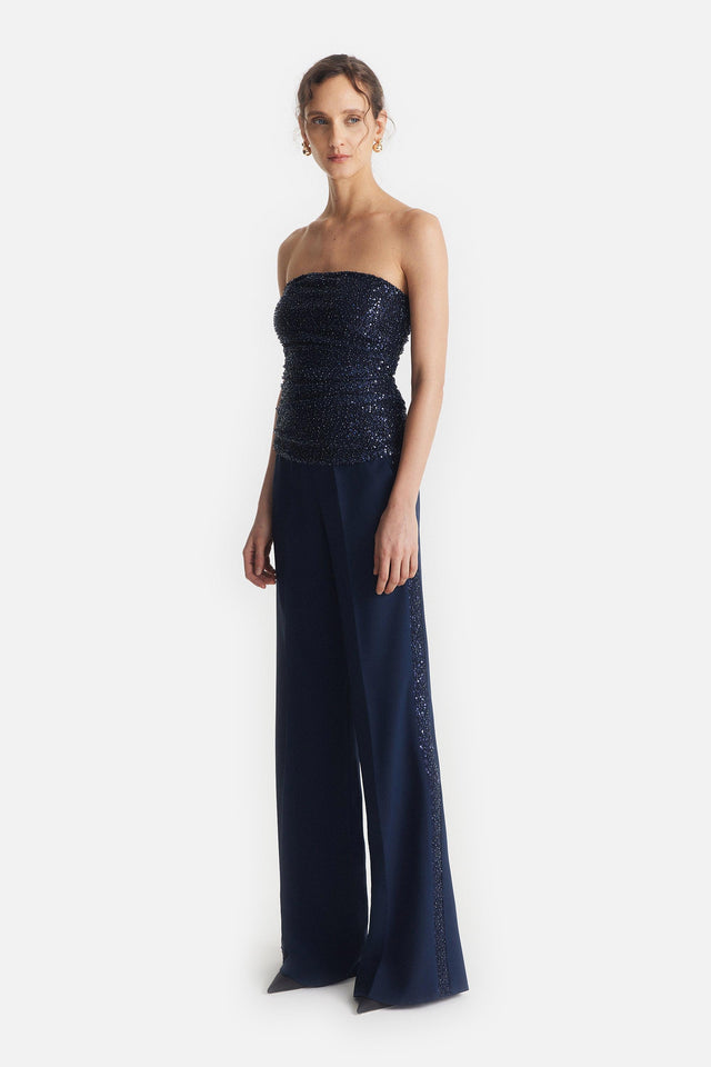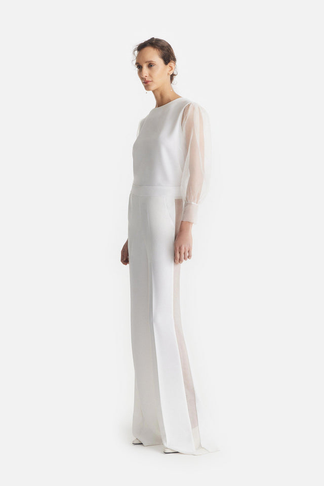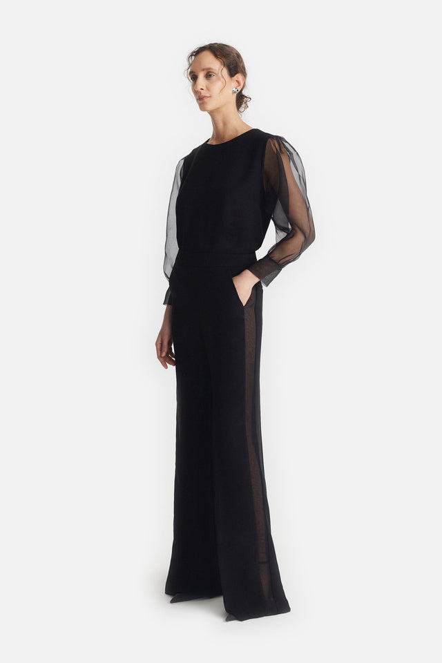 Pantalón Smoking de Crepe Elastizado y Tul Bordado