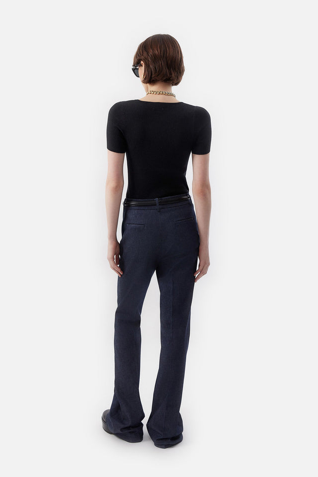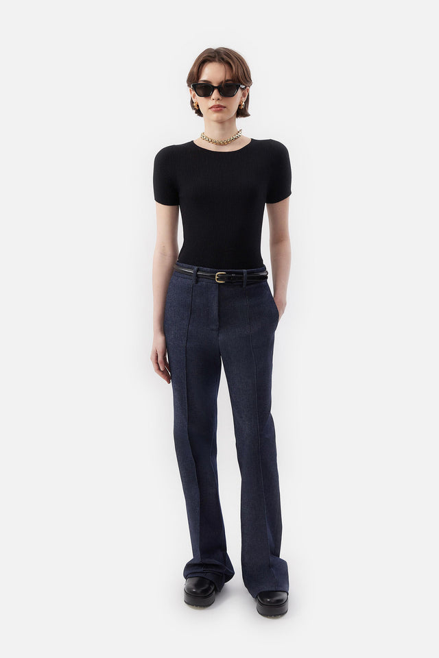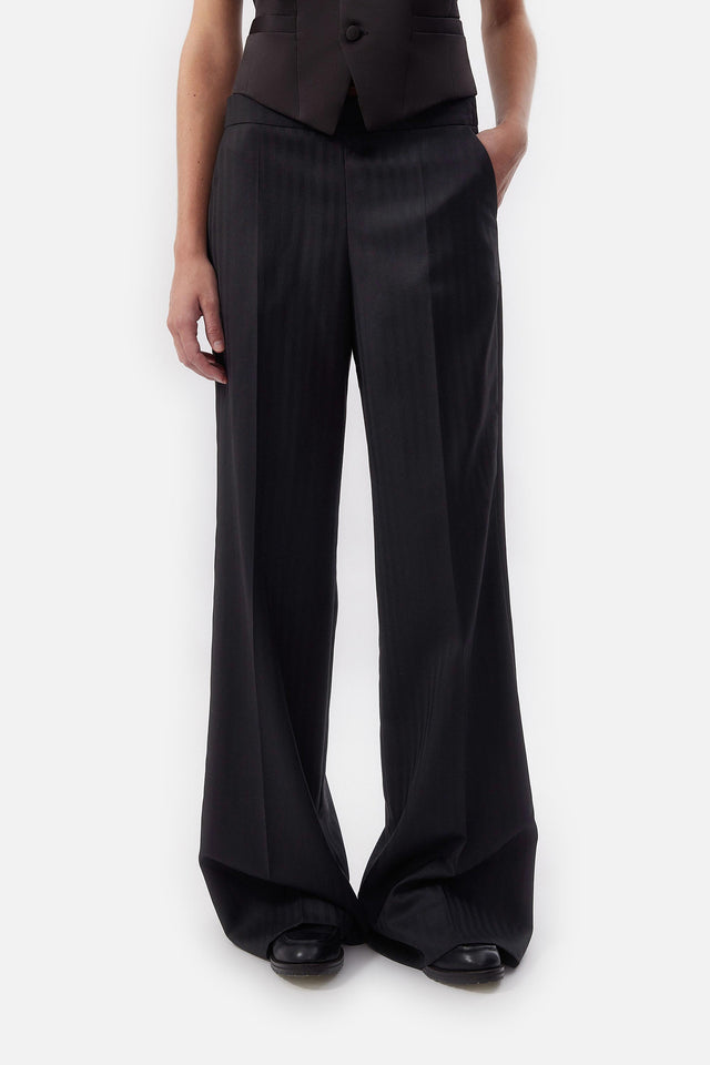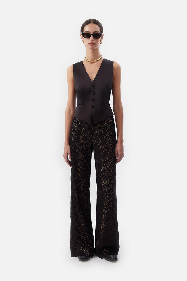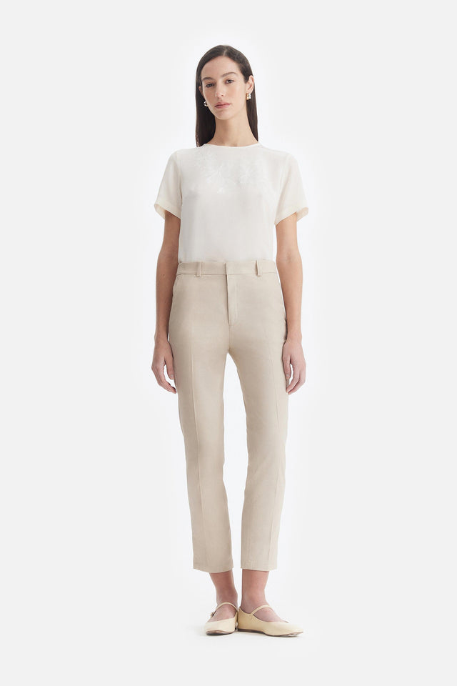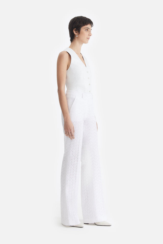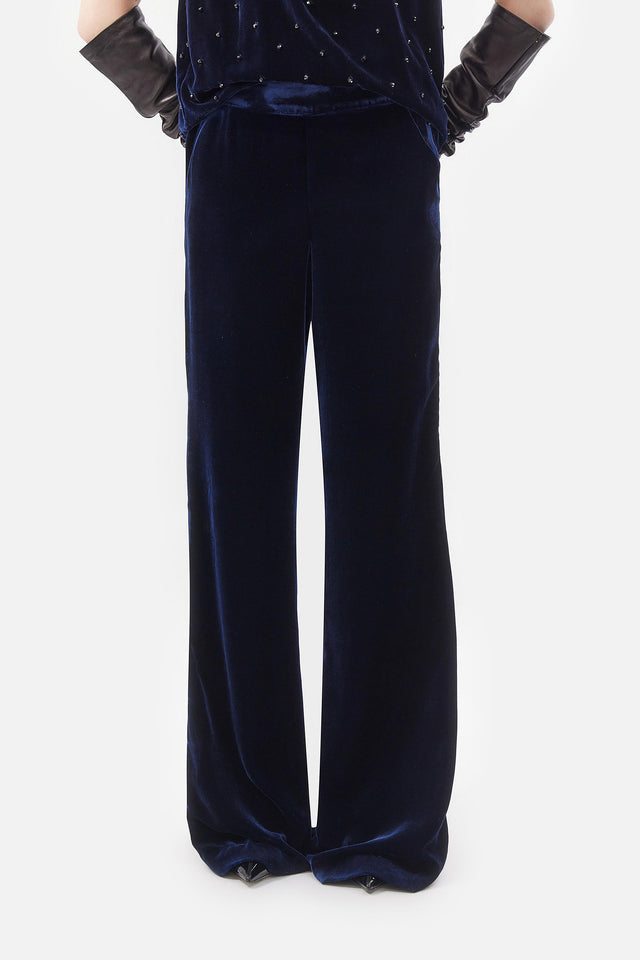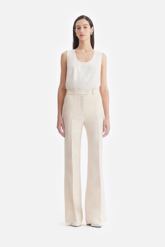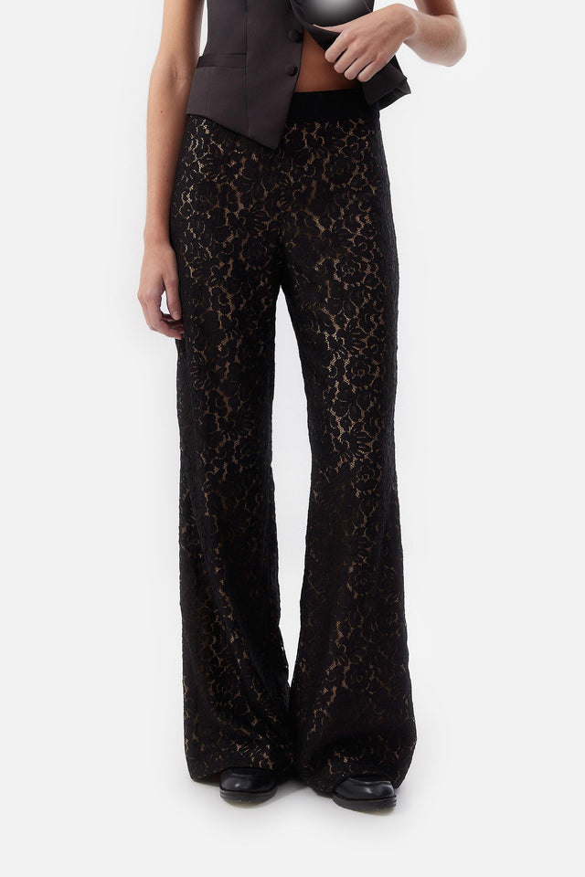 Pantalón Smoking de Crepe Elastizado y Tul Bordado