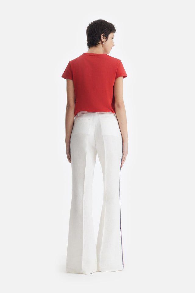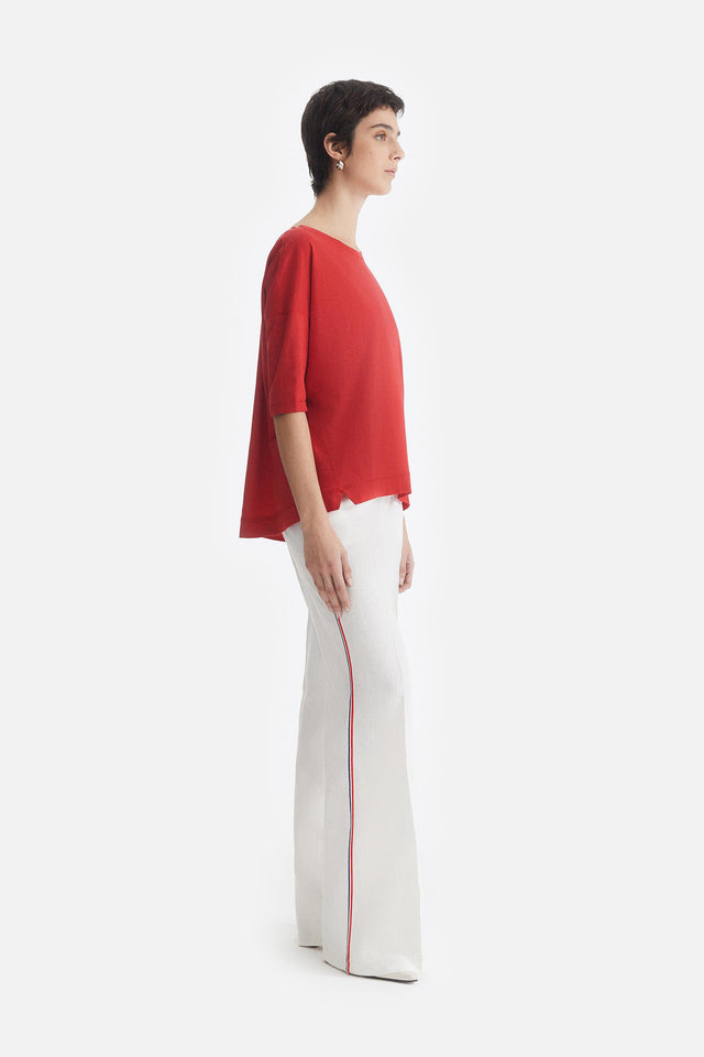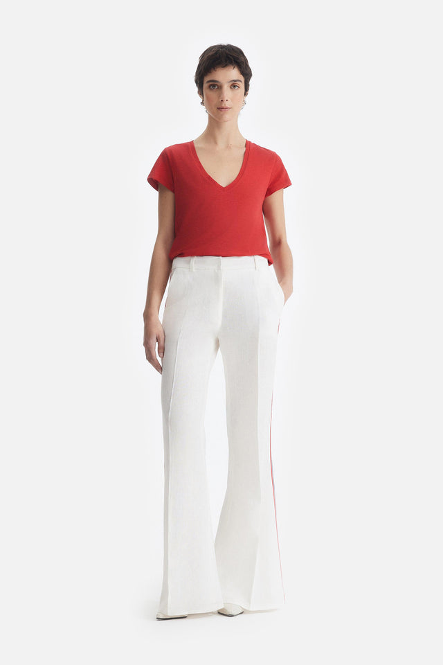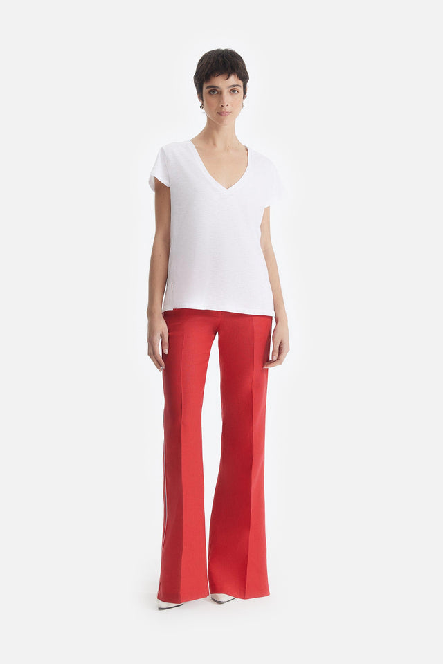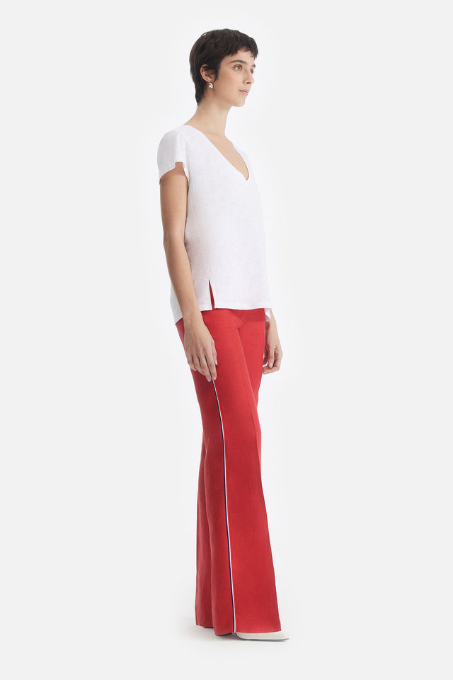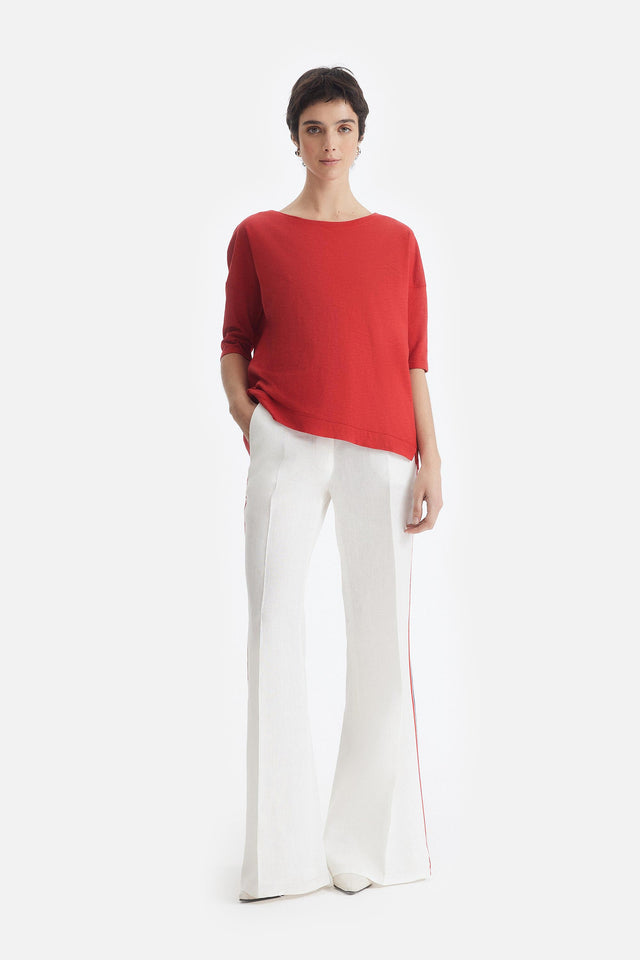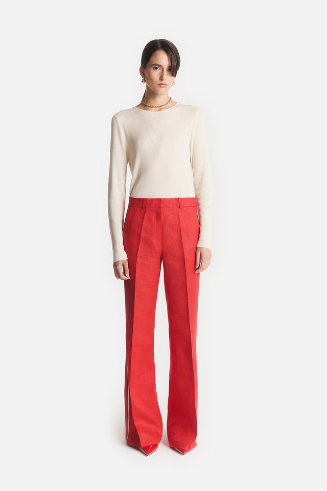 Pantalón Oxford de Lino rojo con Detalle Lateral