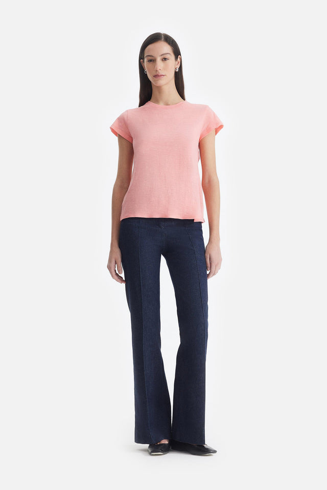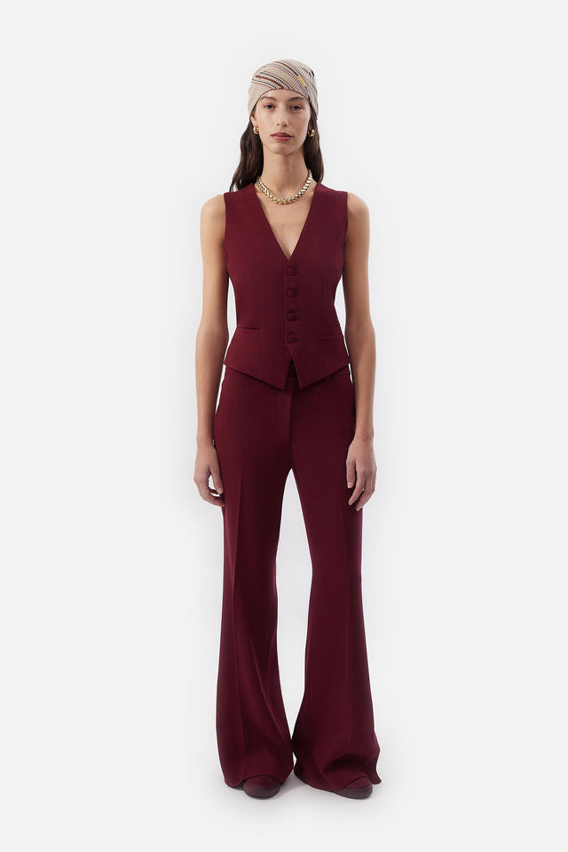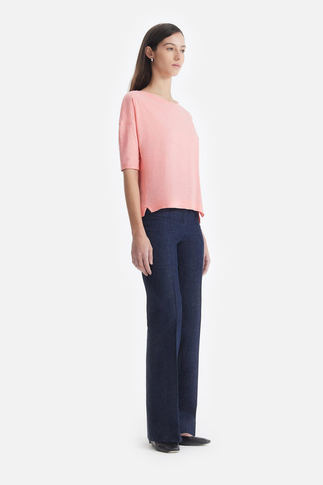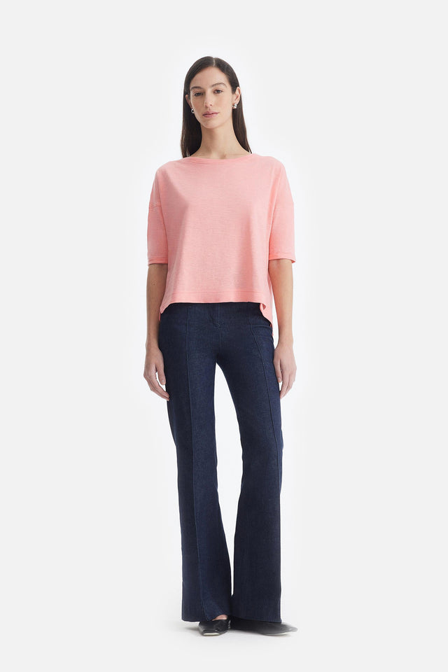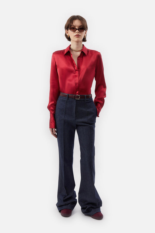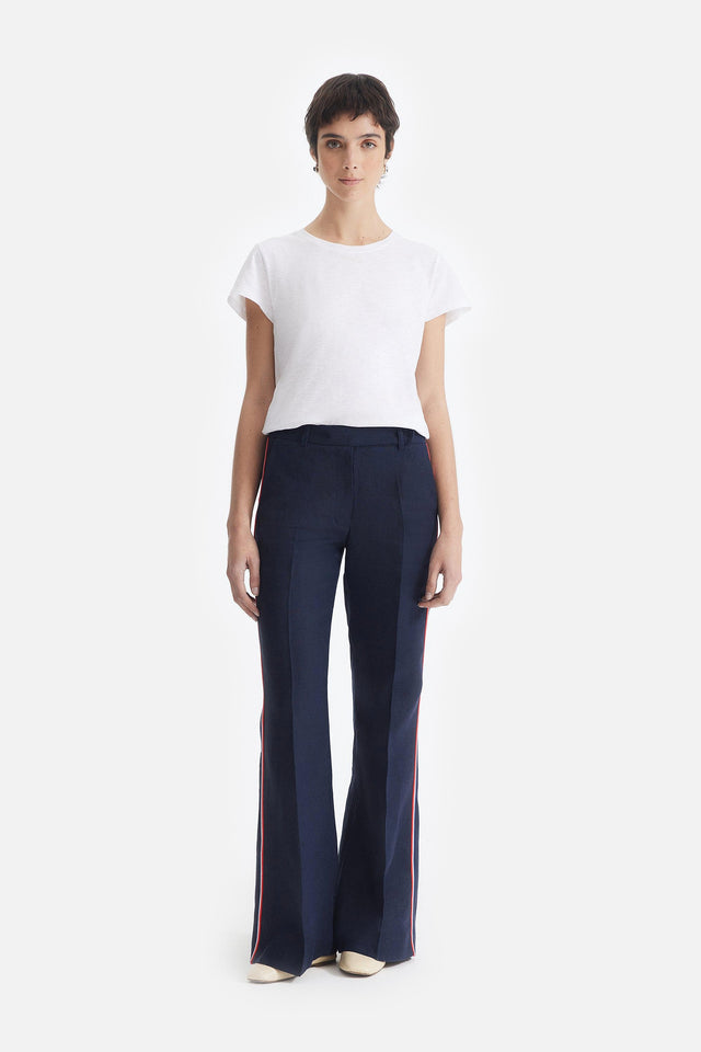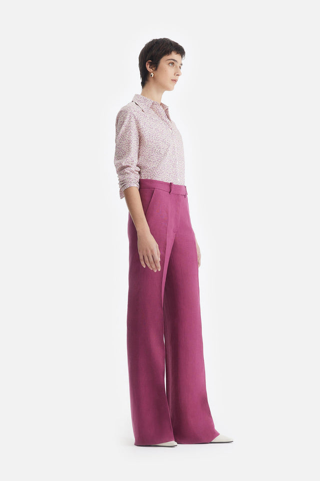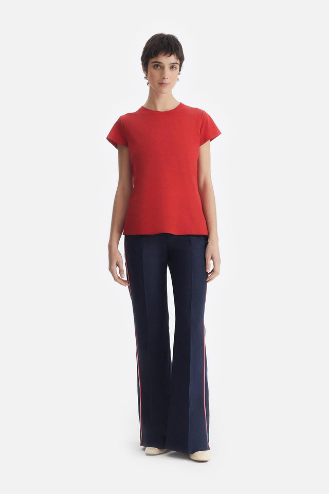 Pantalón Oxford de Lino rojo con Detalle Lateral