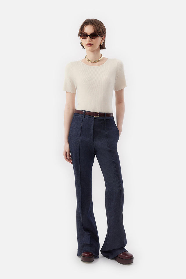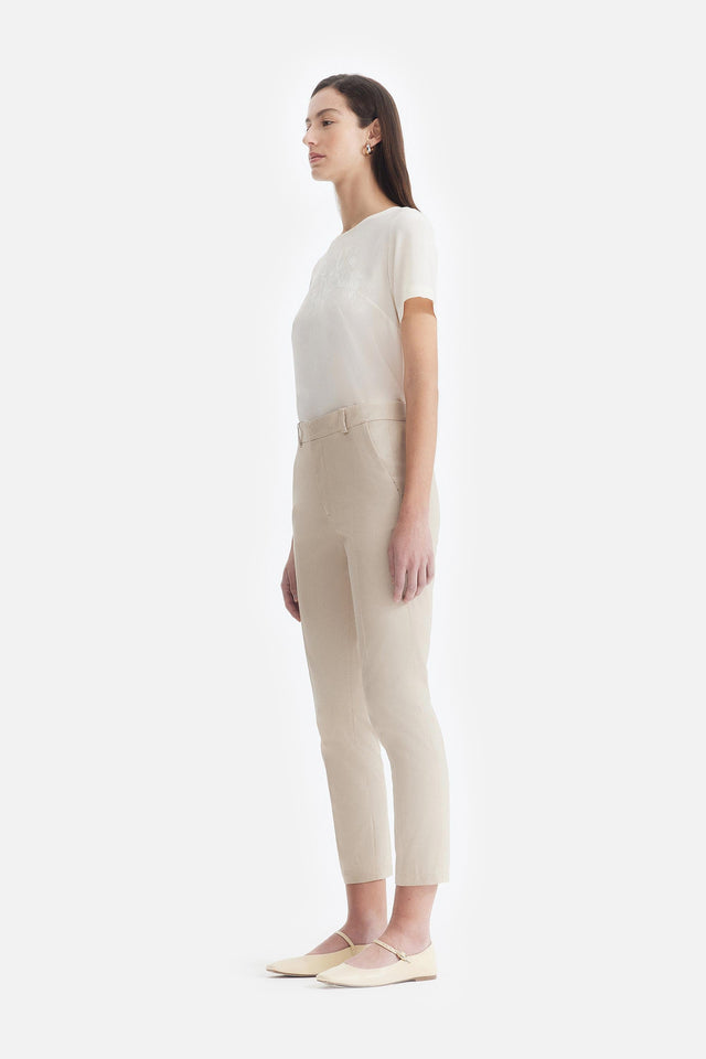 Pantalón Cropped con Boa de Plumas de Raya Diplomatica