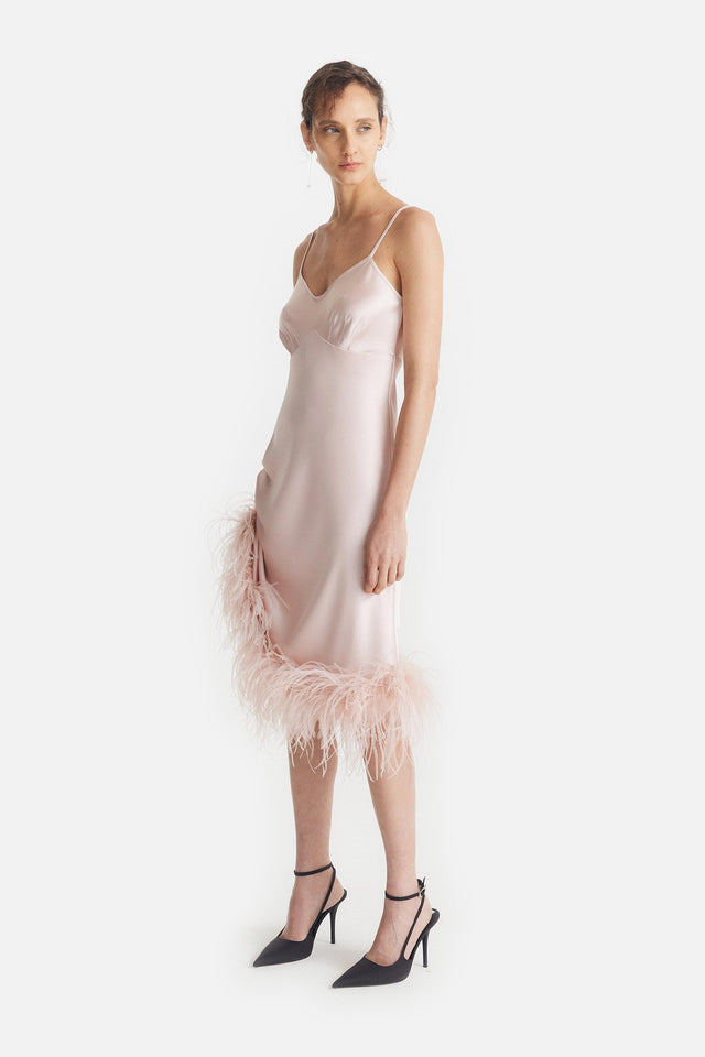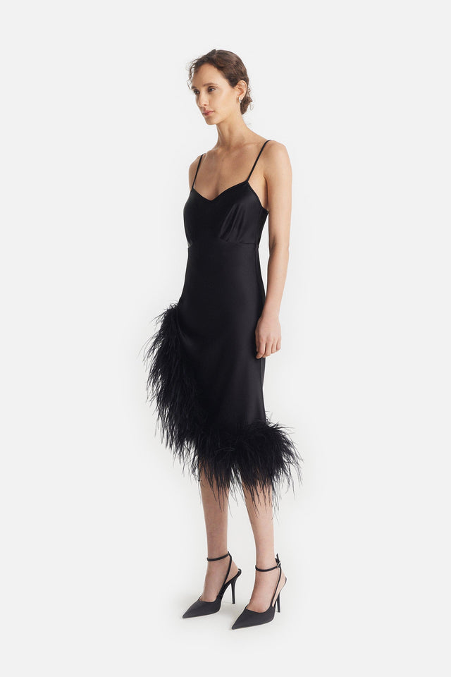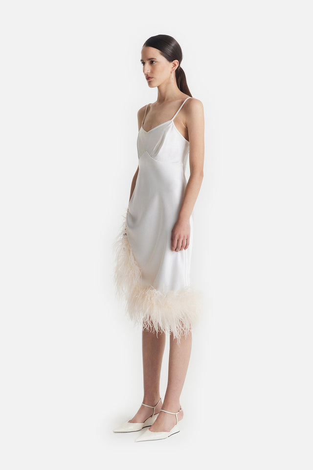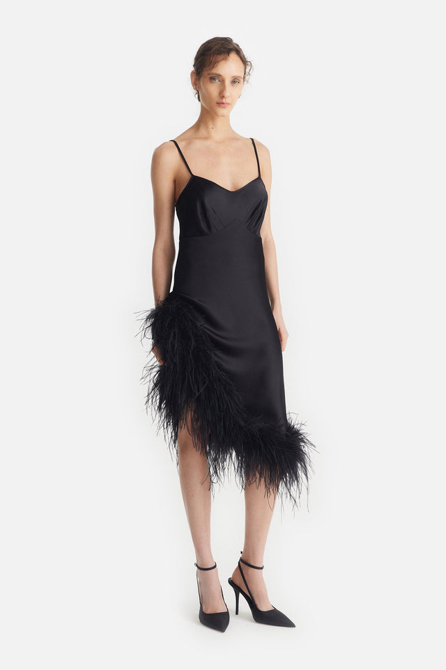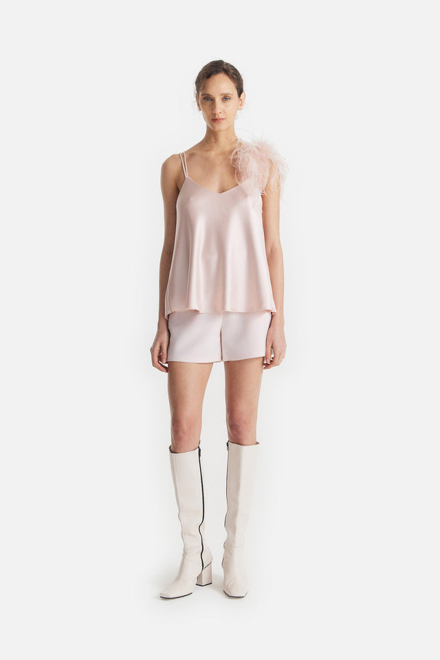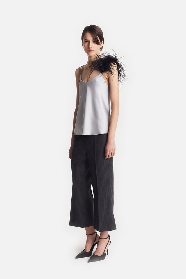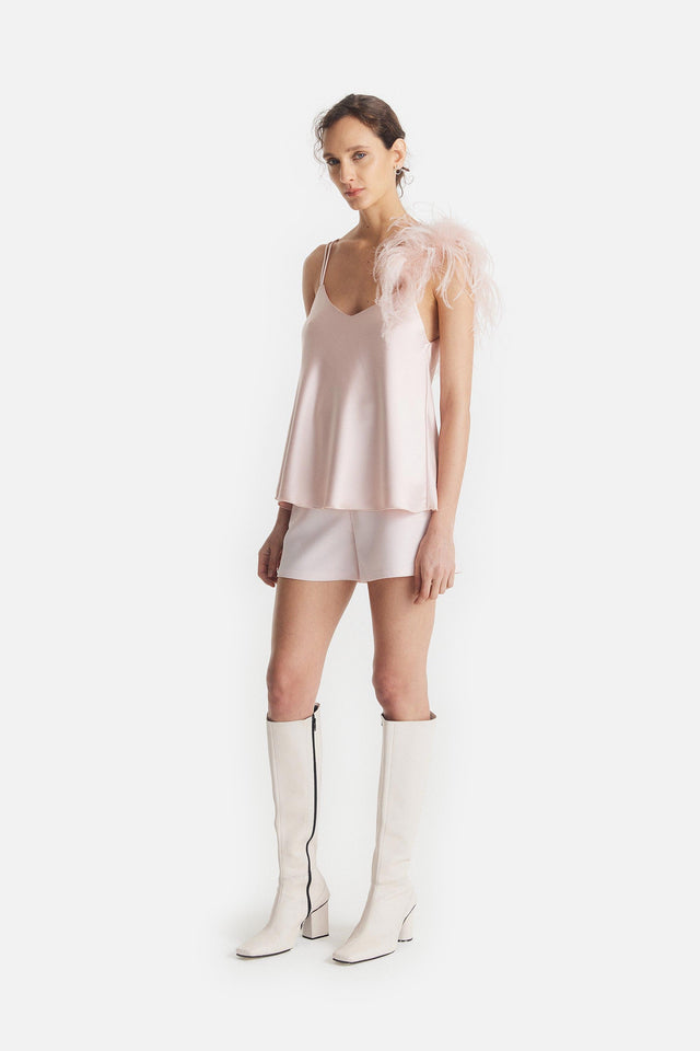Top Lencero de Saten de Seda con Guiño de Plumas