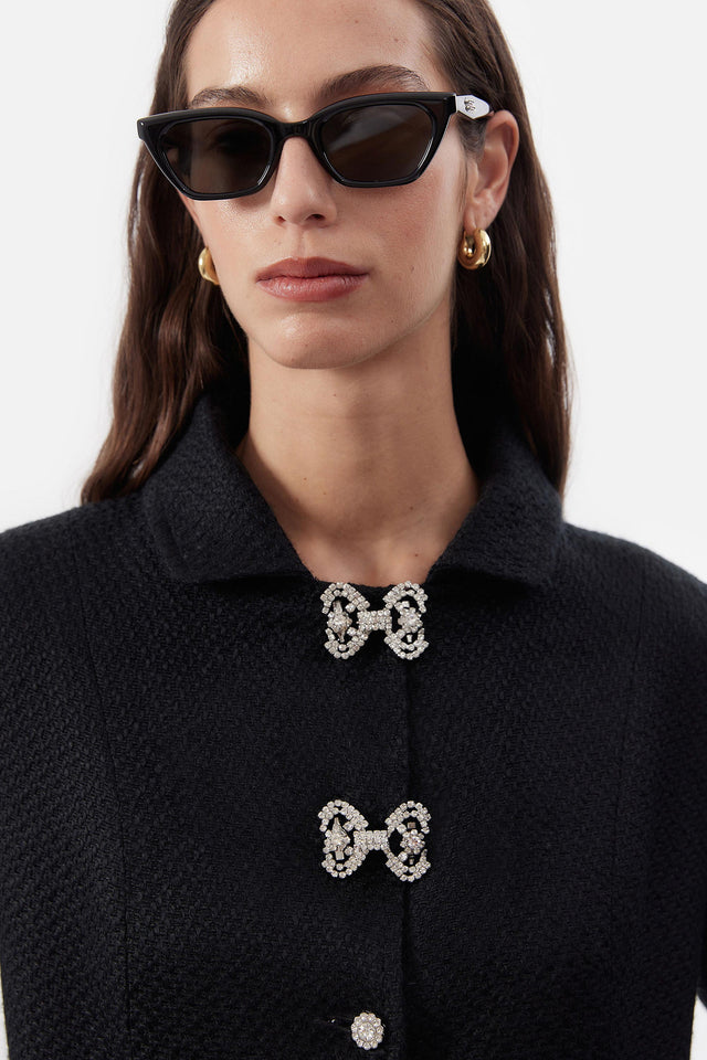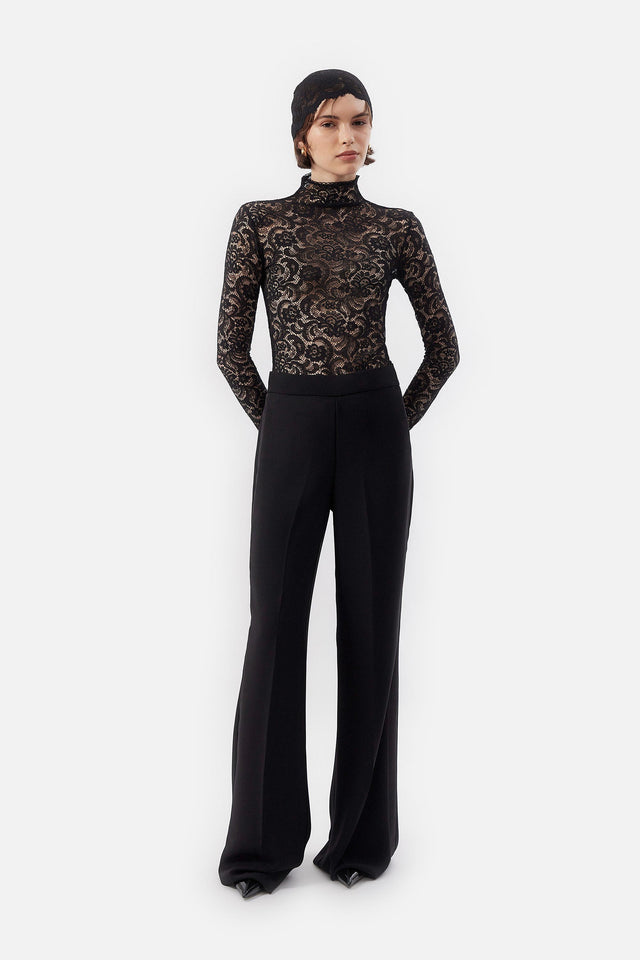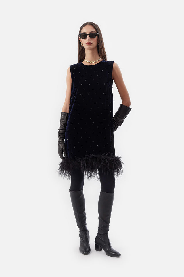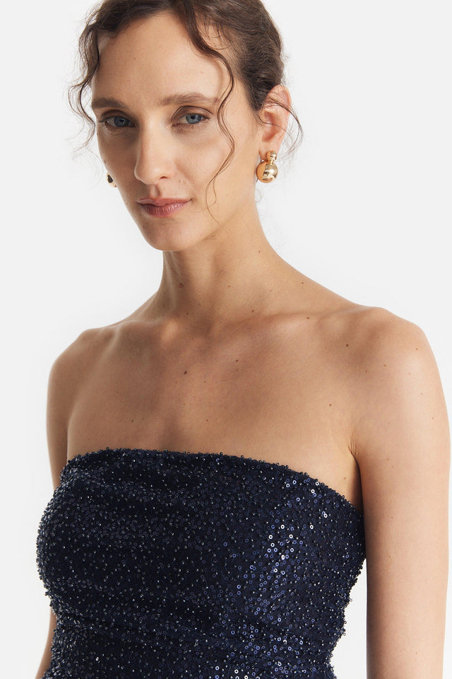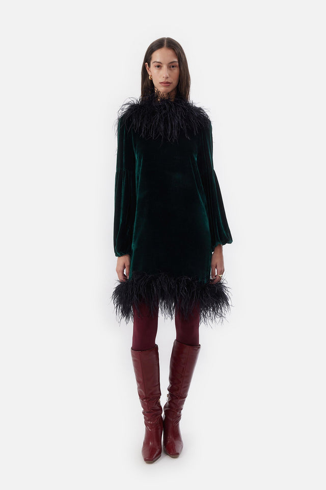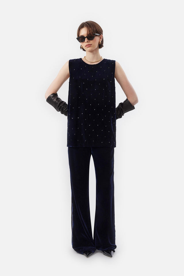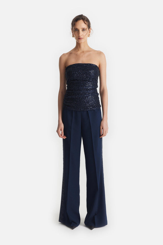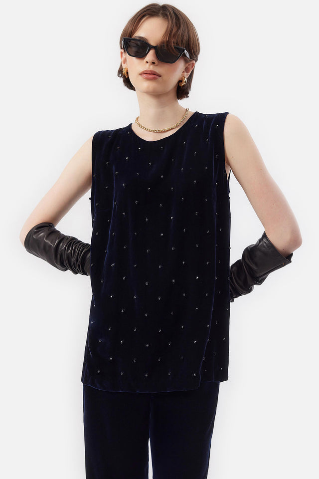 Top Lencero de Saten de Seda con Guiño de Plumas