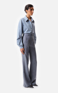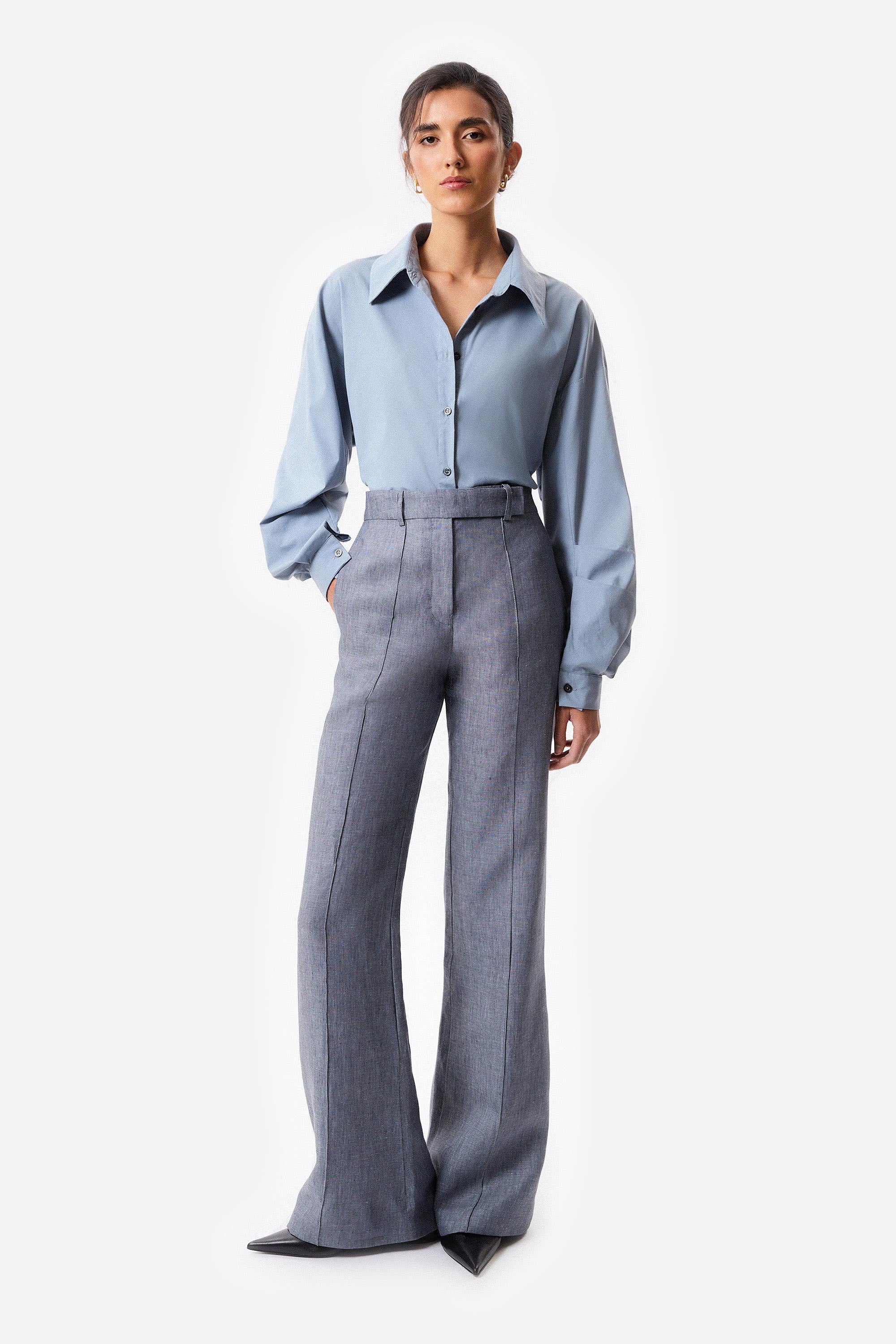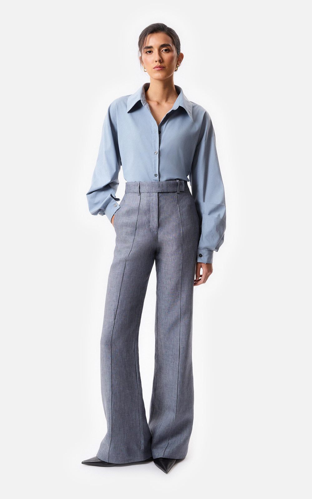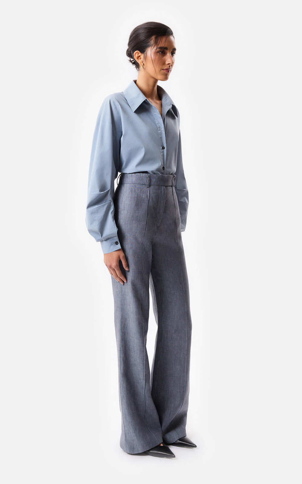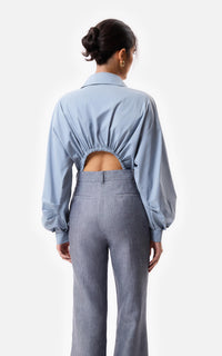 • Camisa con apertura en espalda y mangas fruncidas en poplin elastizado.