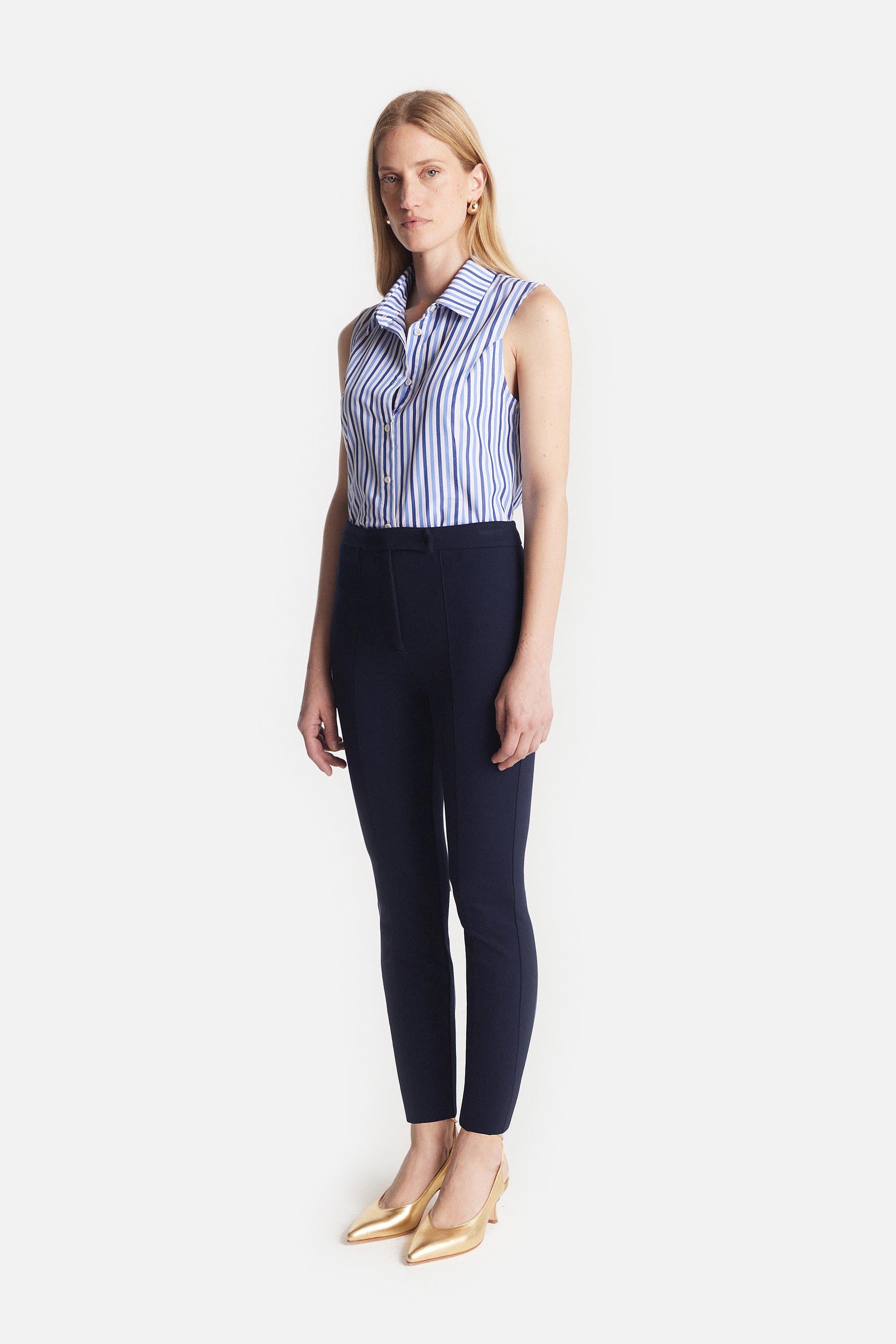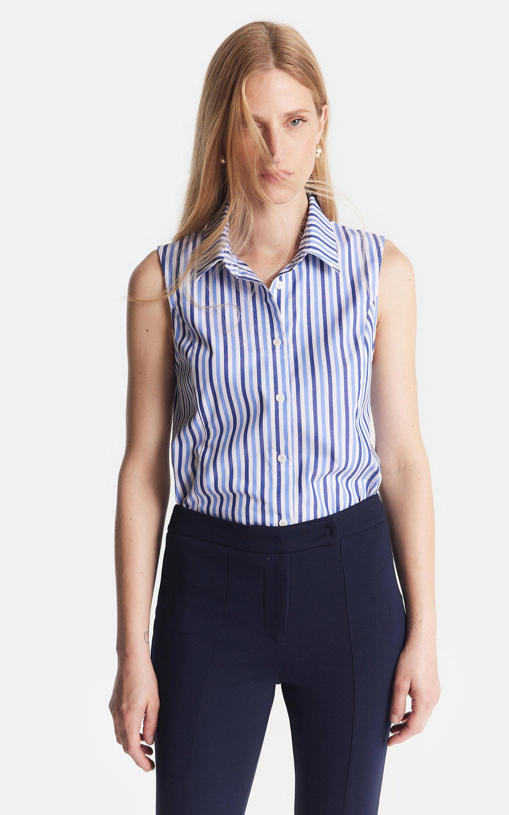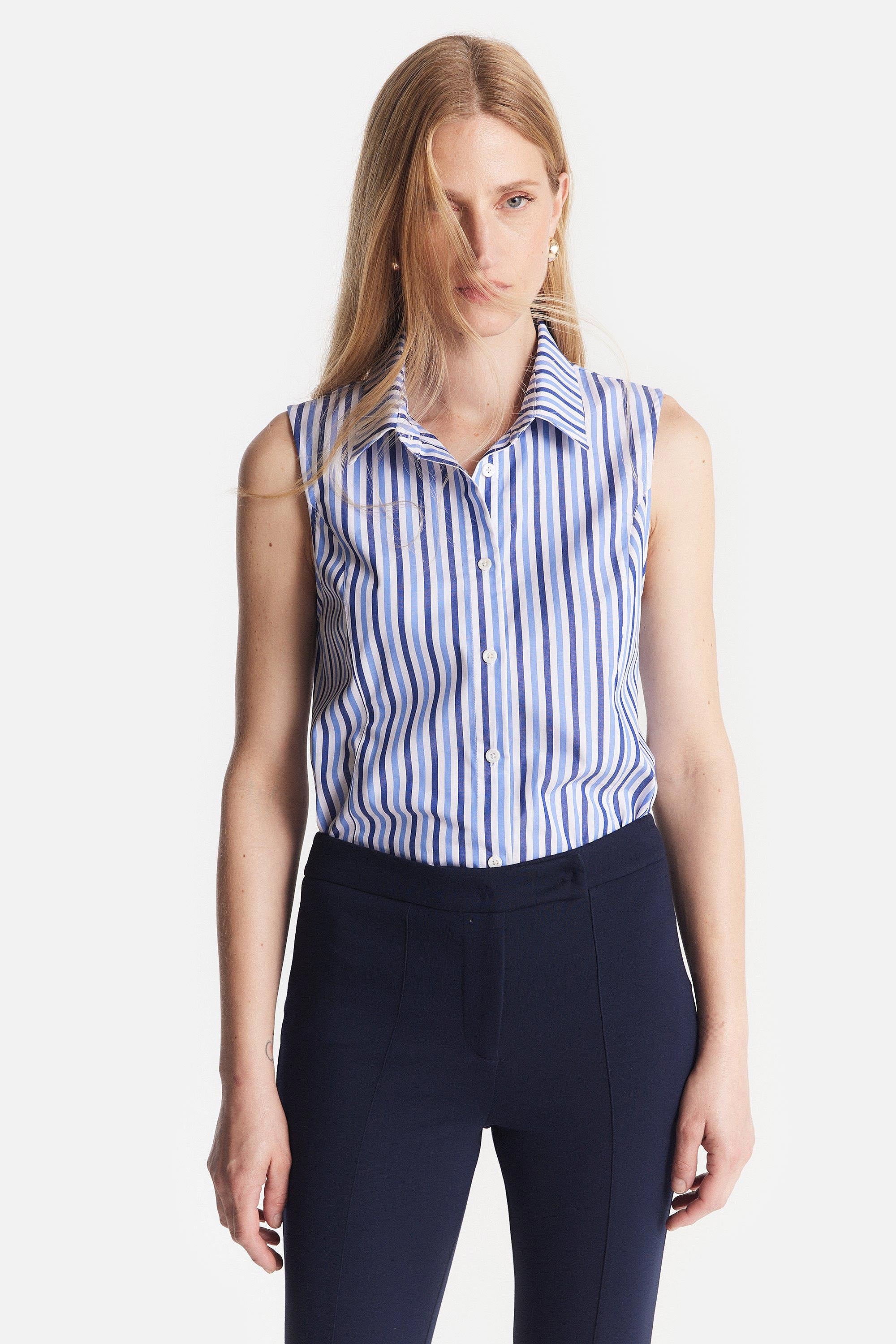 • Camisa sin Manga de Poplin Rayada