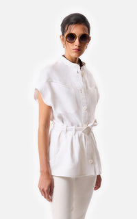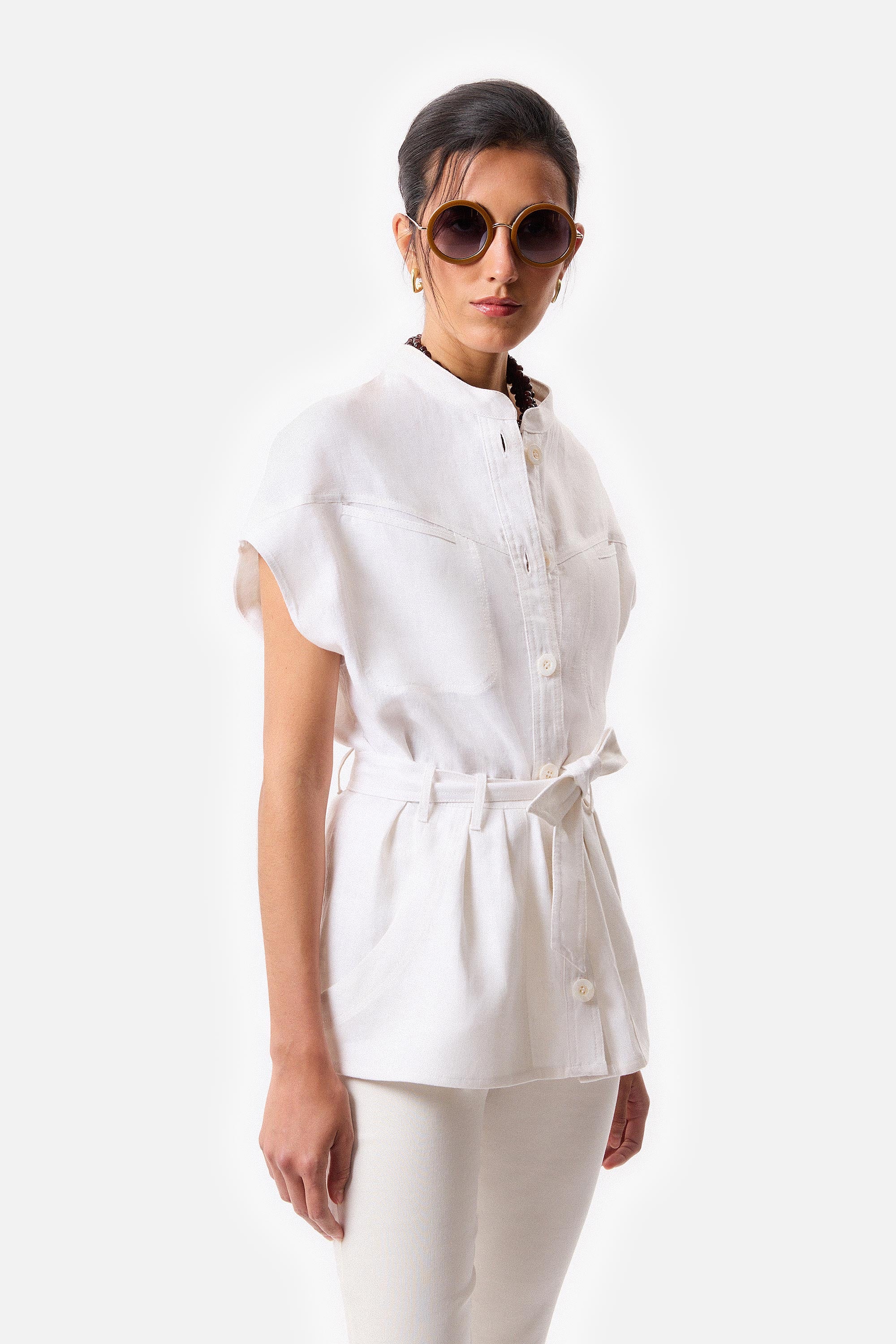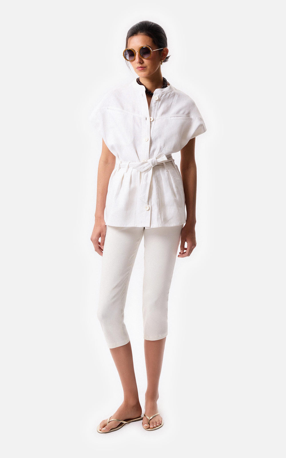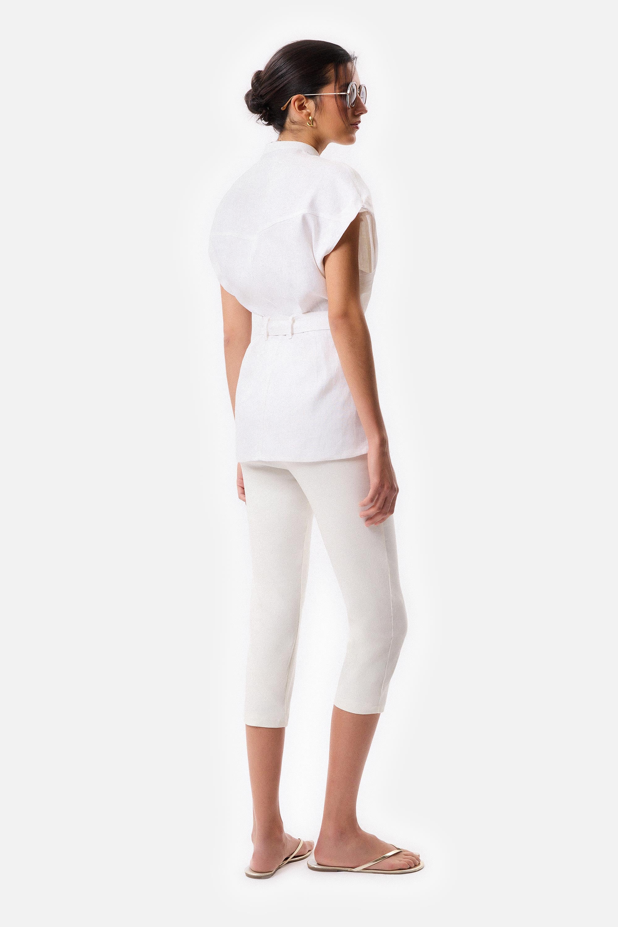 • Capri stretch técnico off white con cierre invisible.