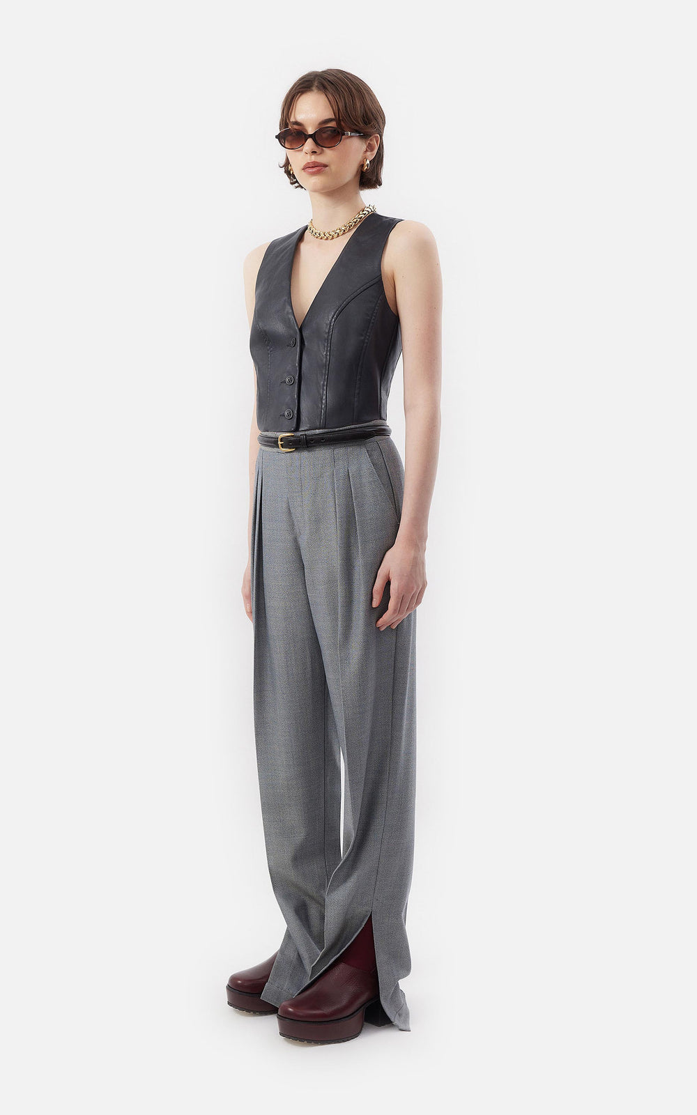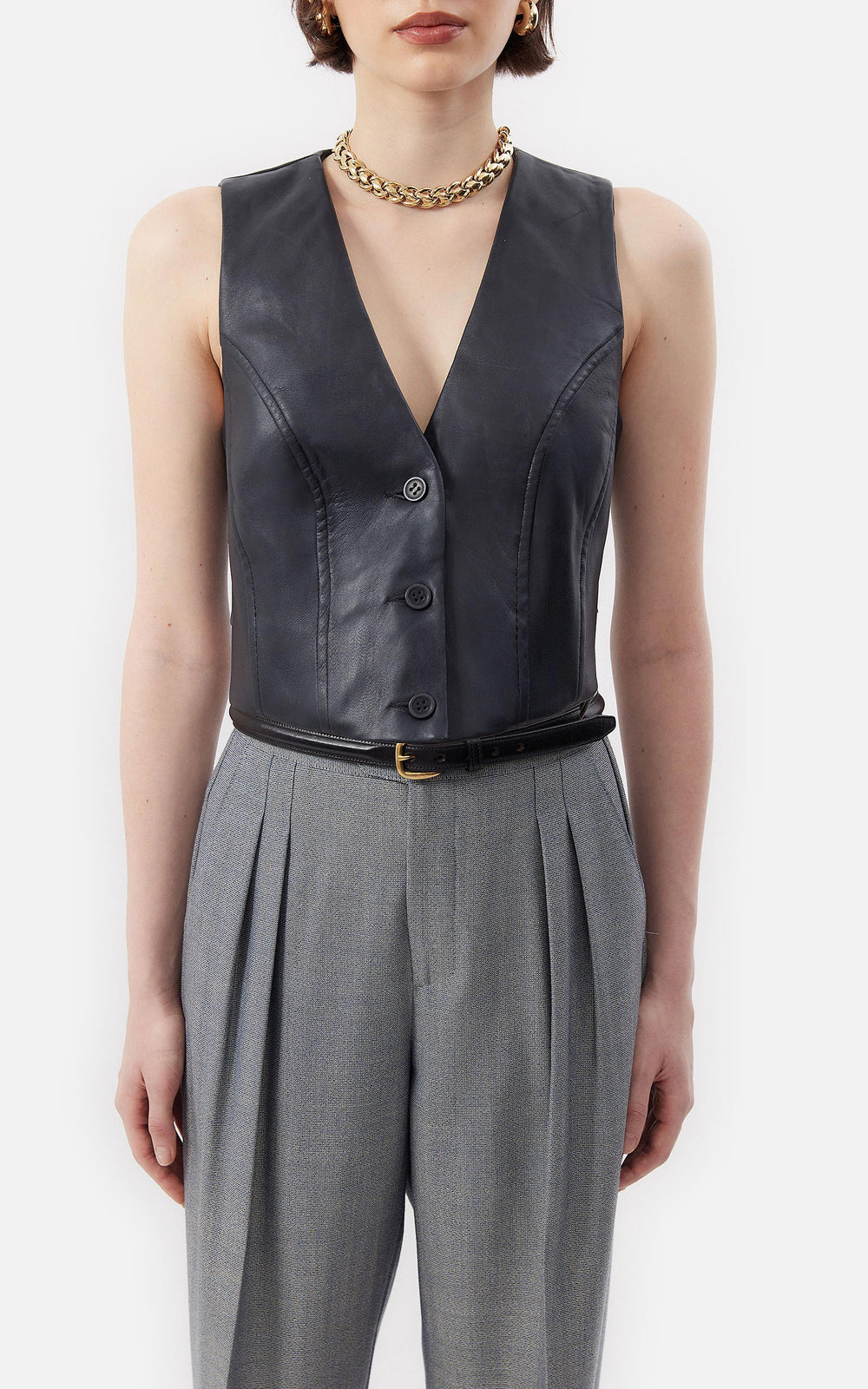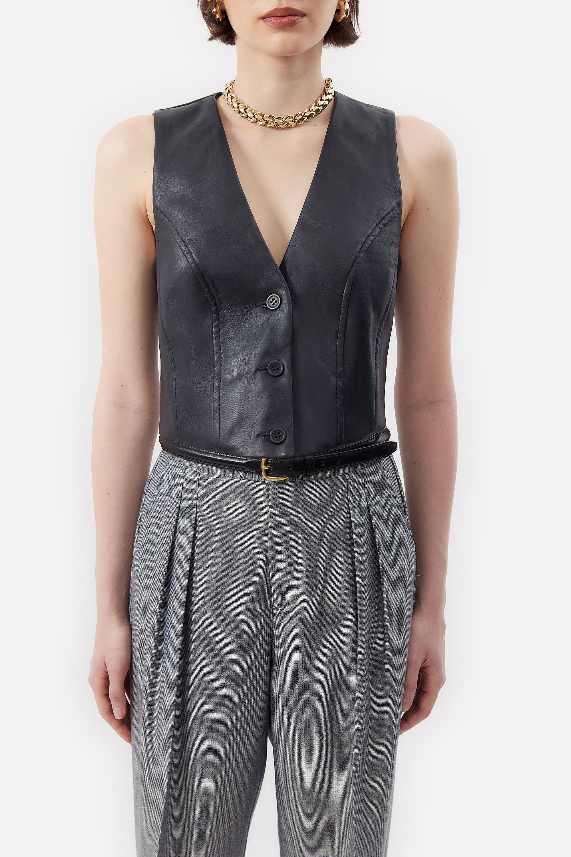 • Chaleco Sastrero Cropped de Cuero
