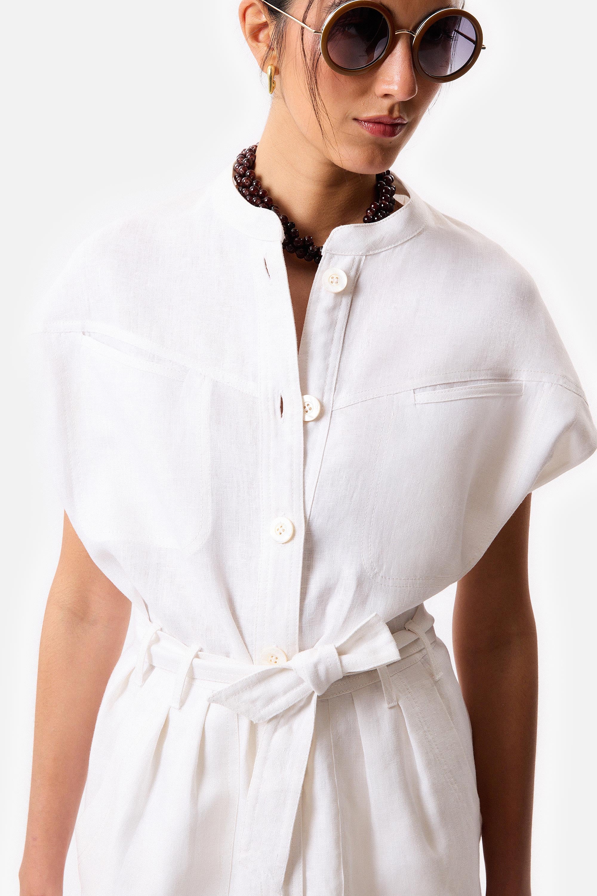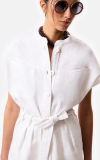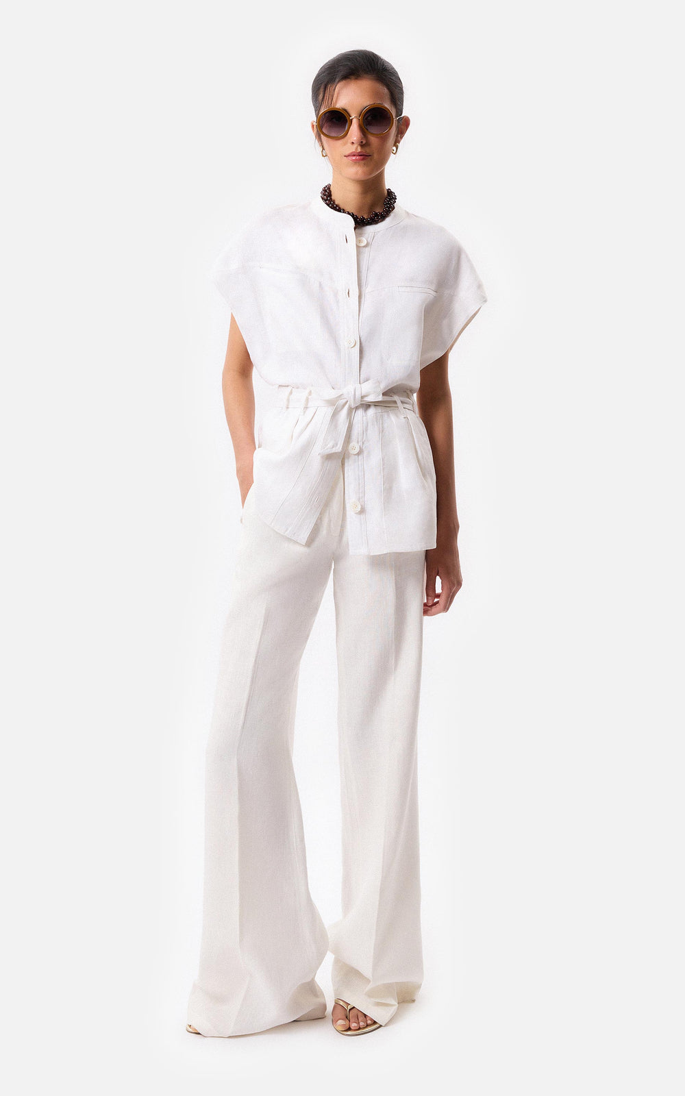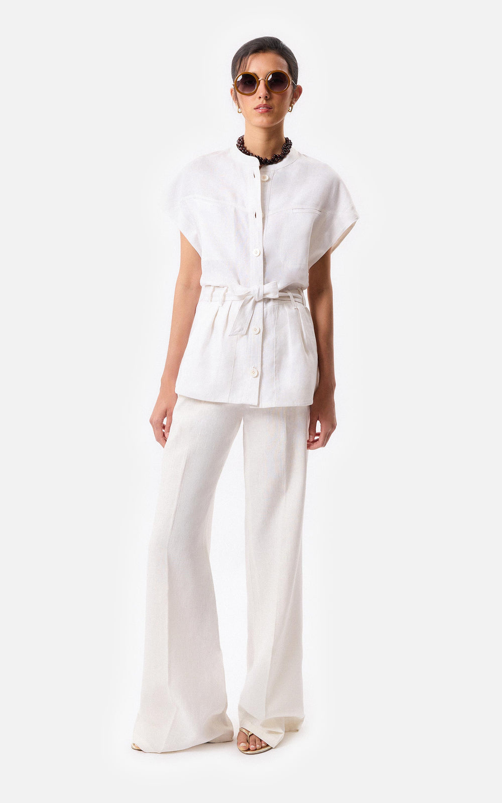 • Chaqueta con lazo off white, con botones nácar a tono.