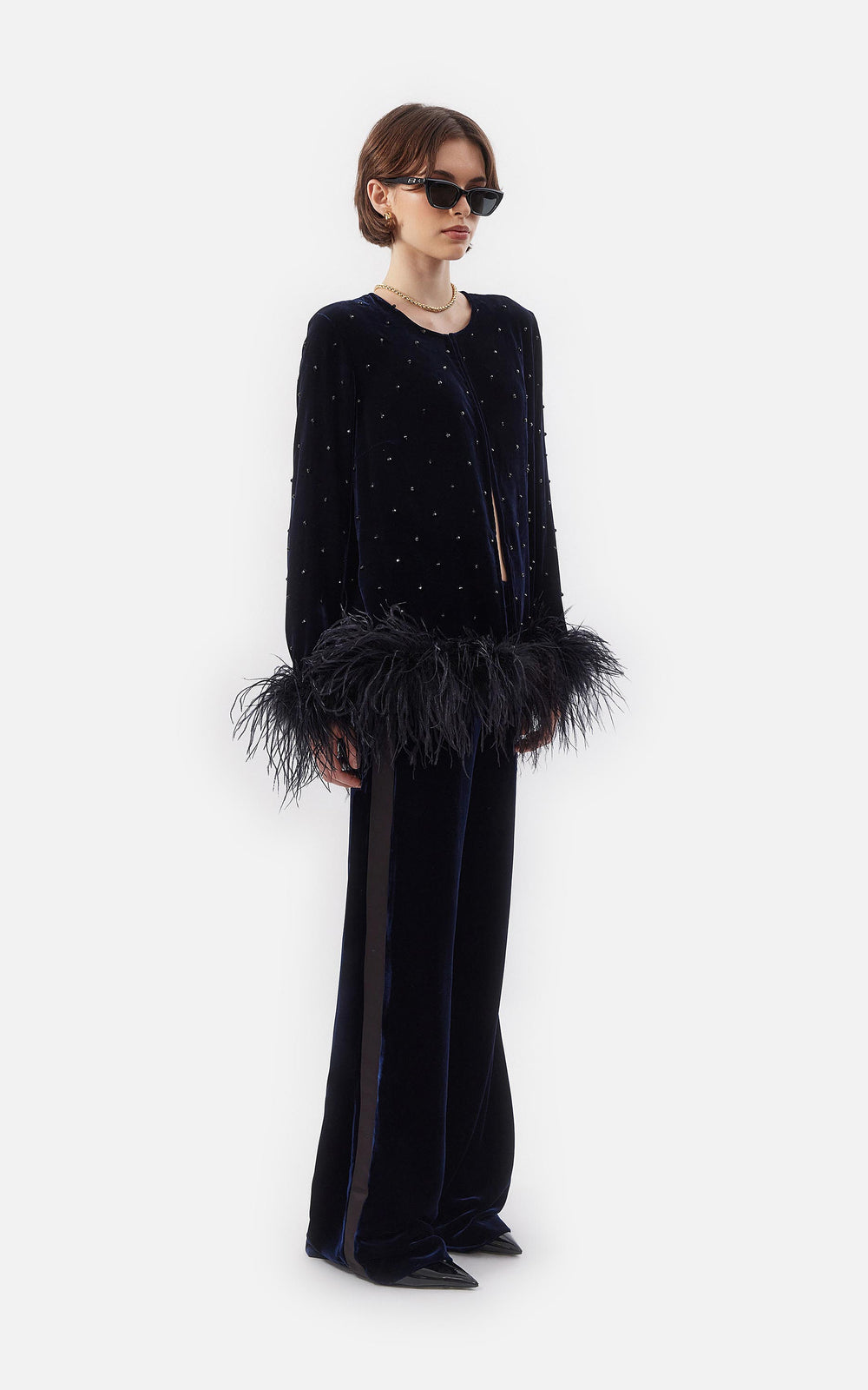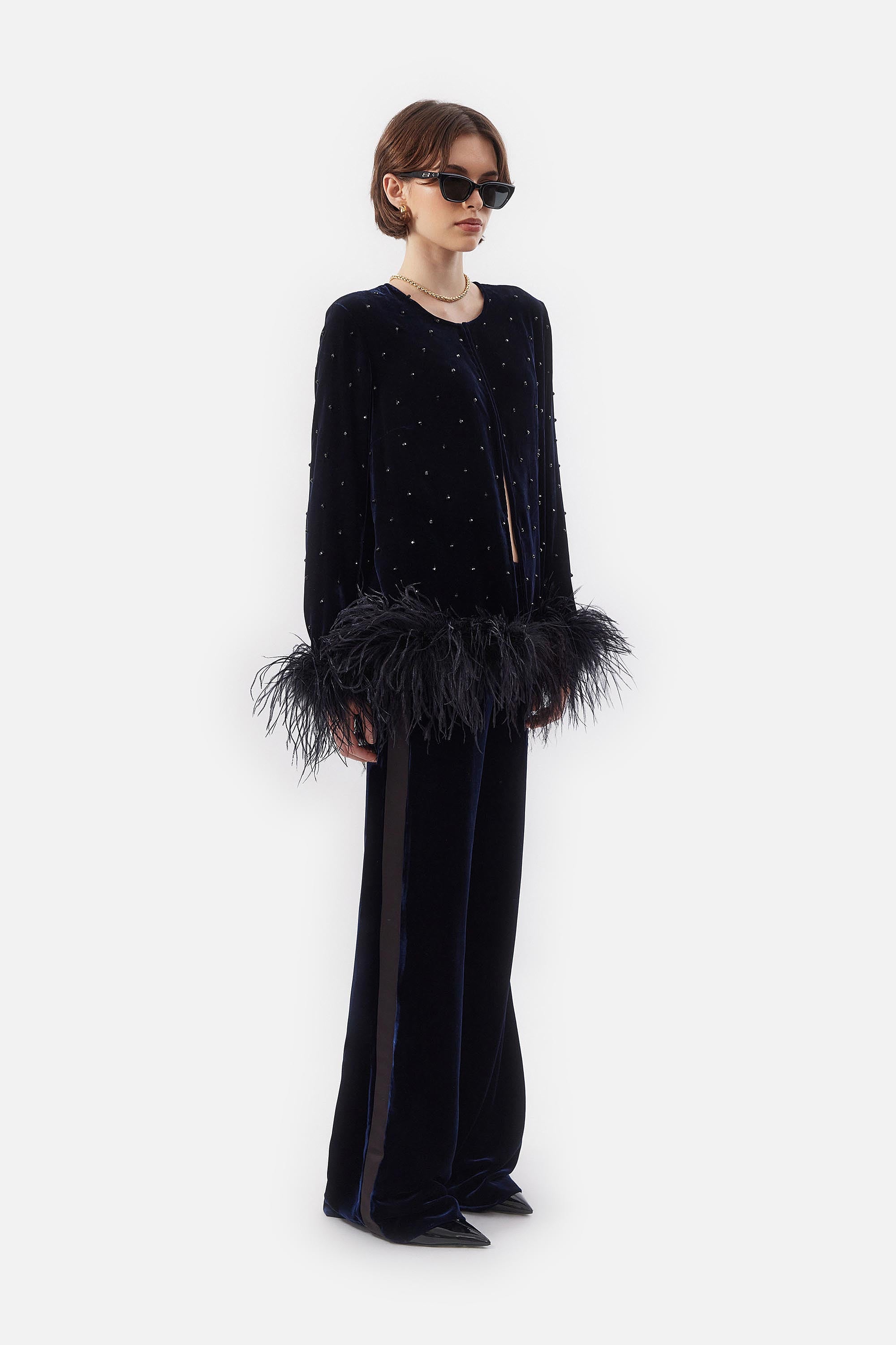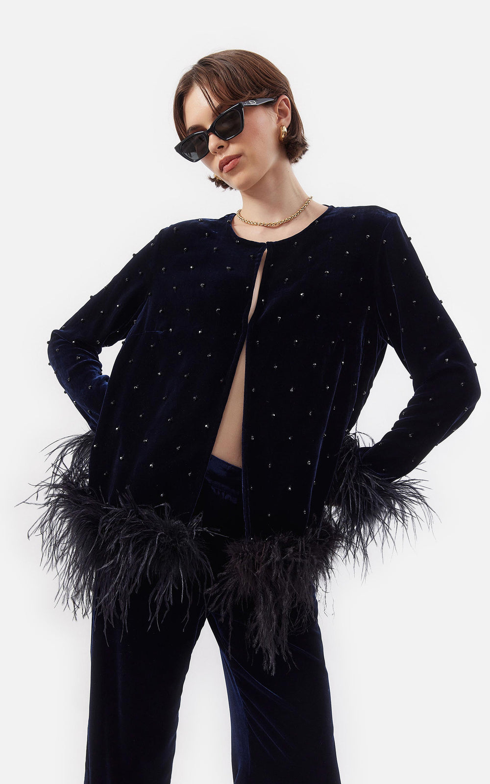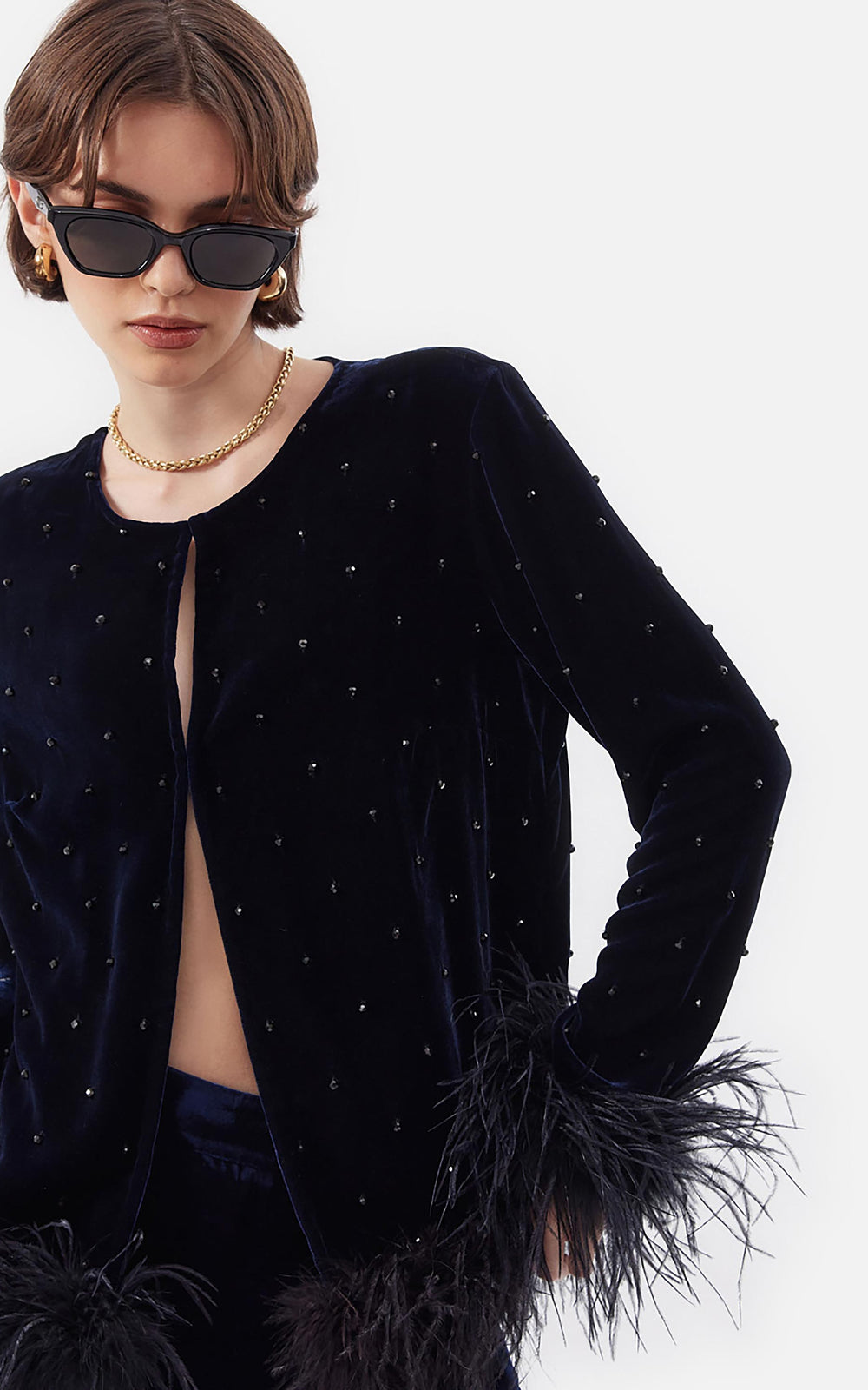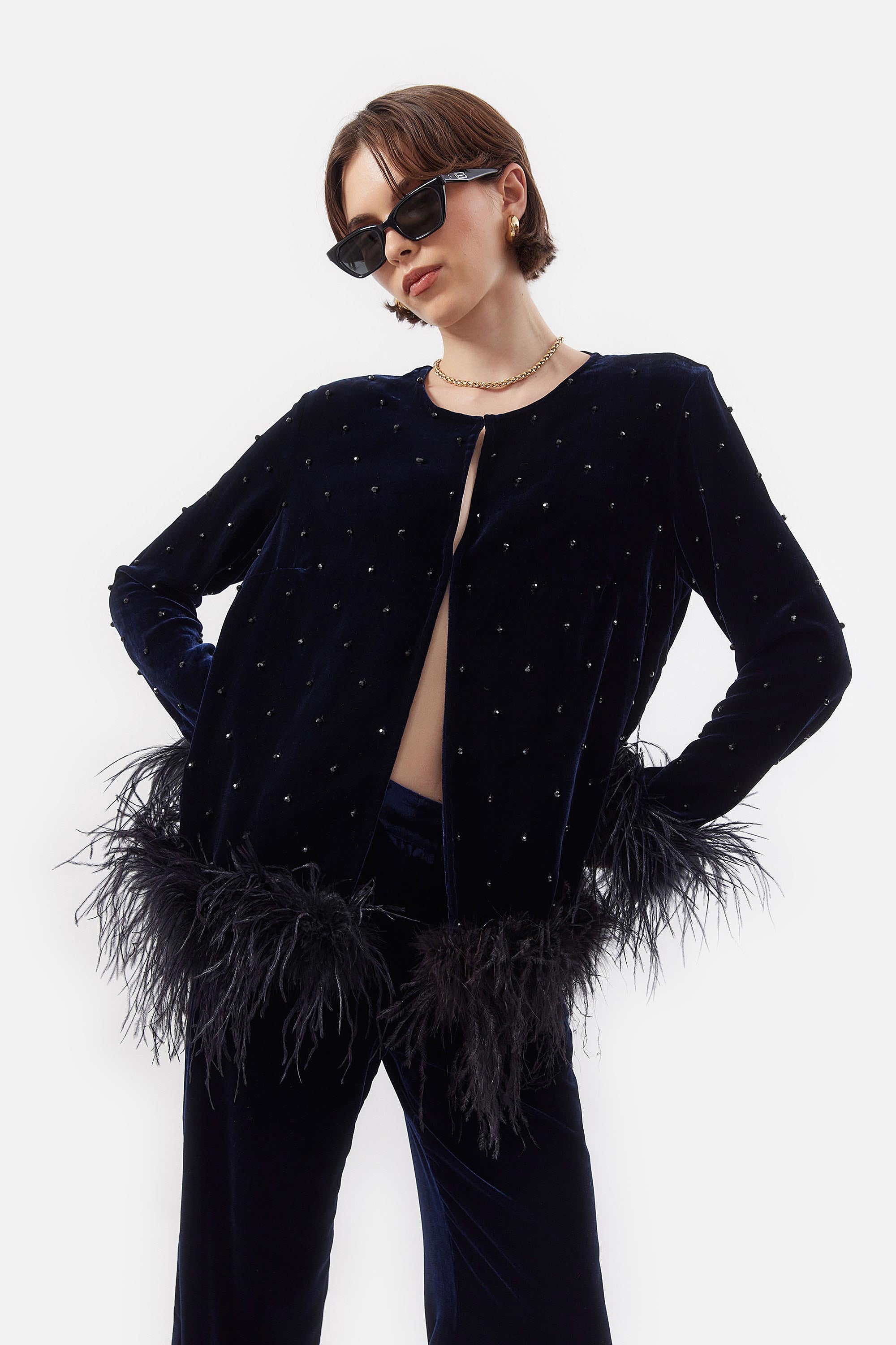 • Chaqueta de Chiffon con Piedras