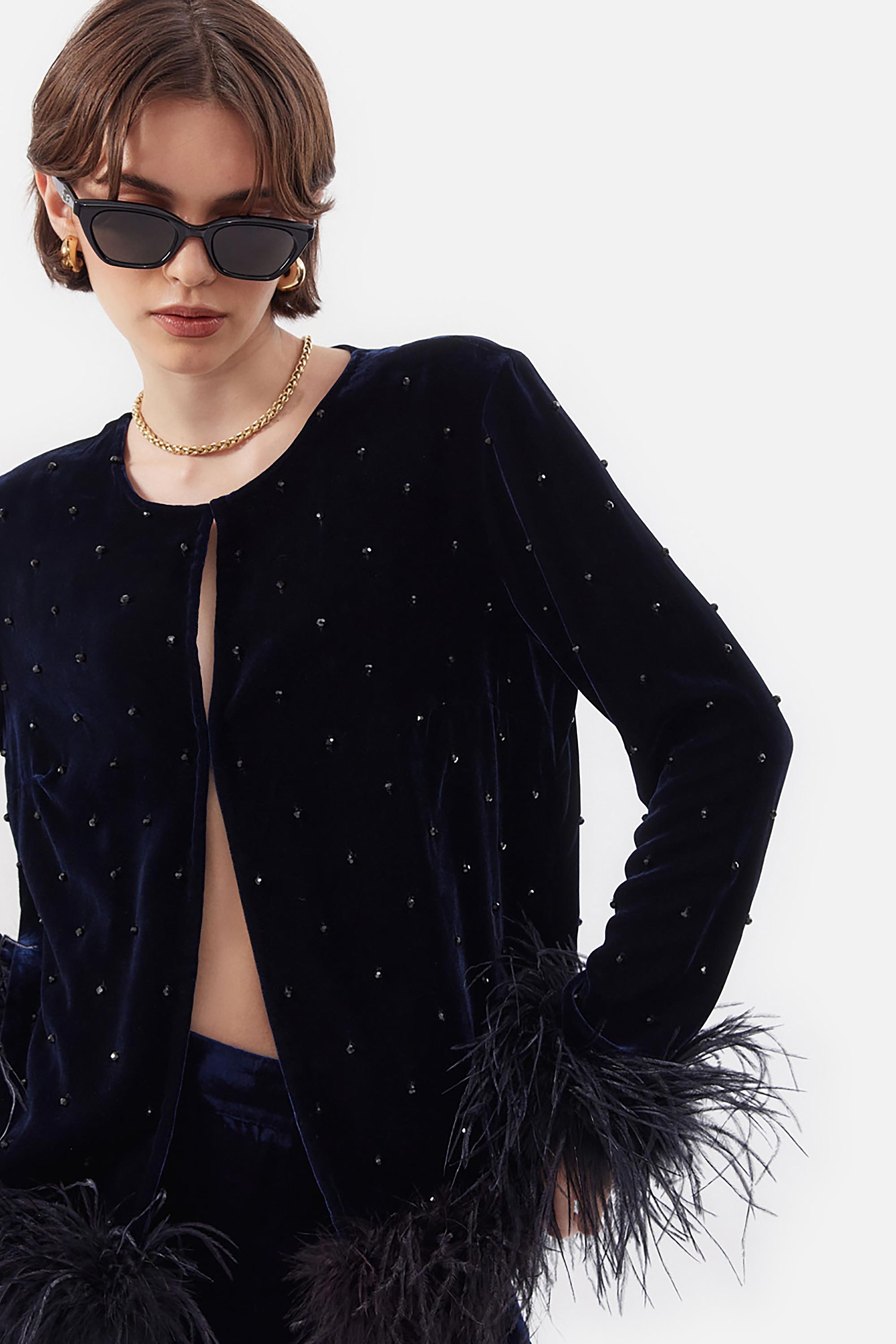 Chaqueta de Chiffon con Piedras