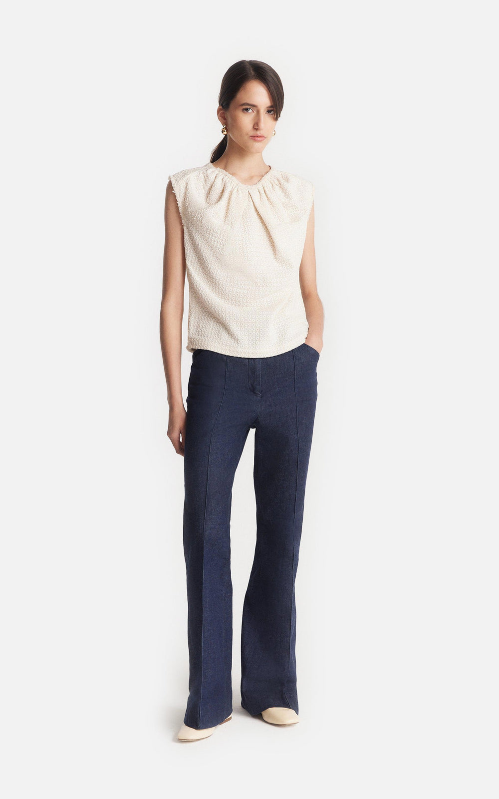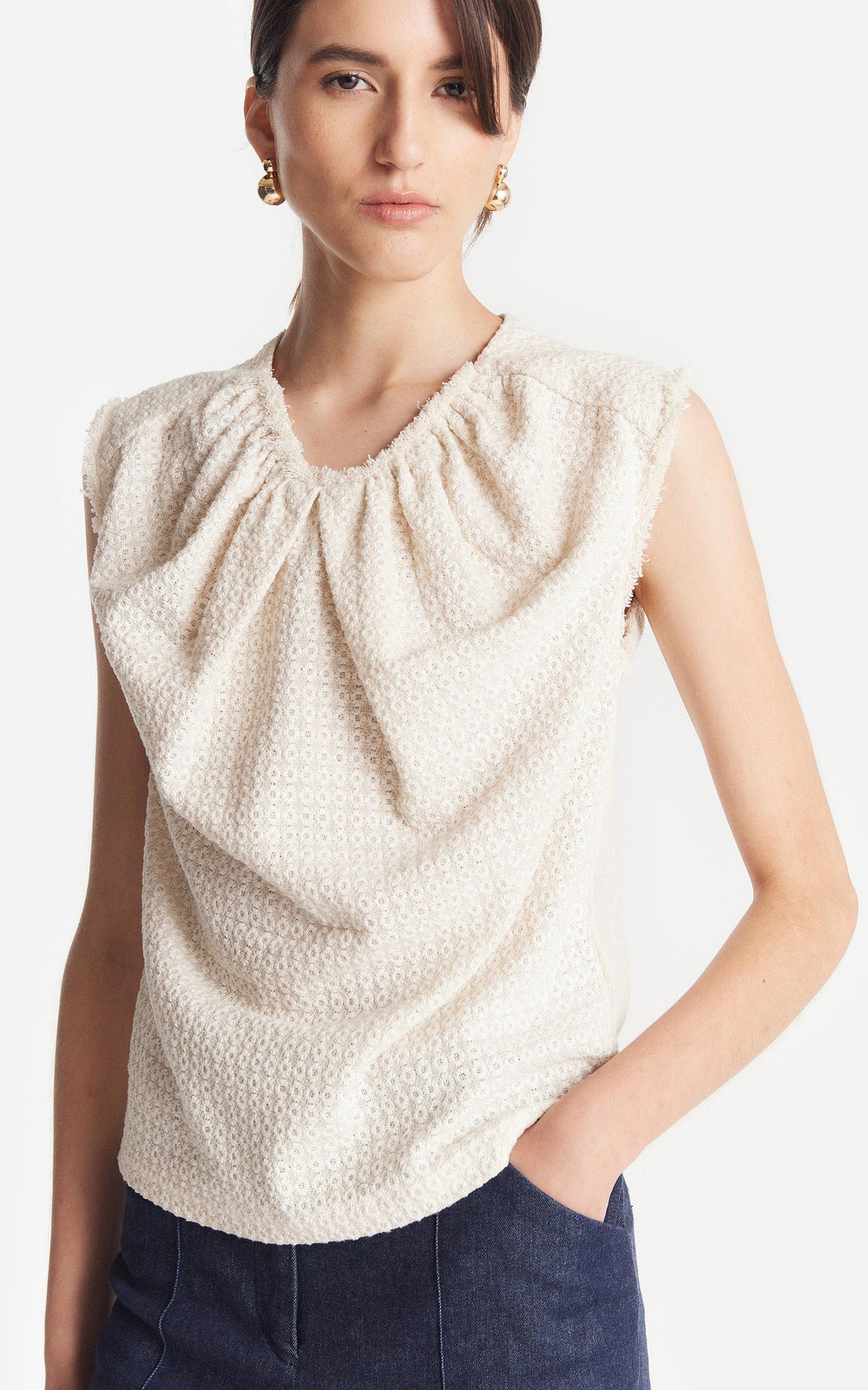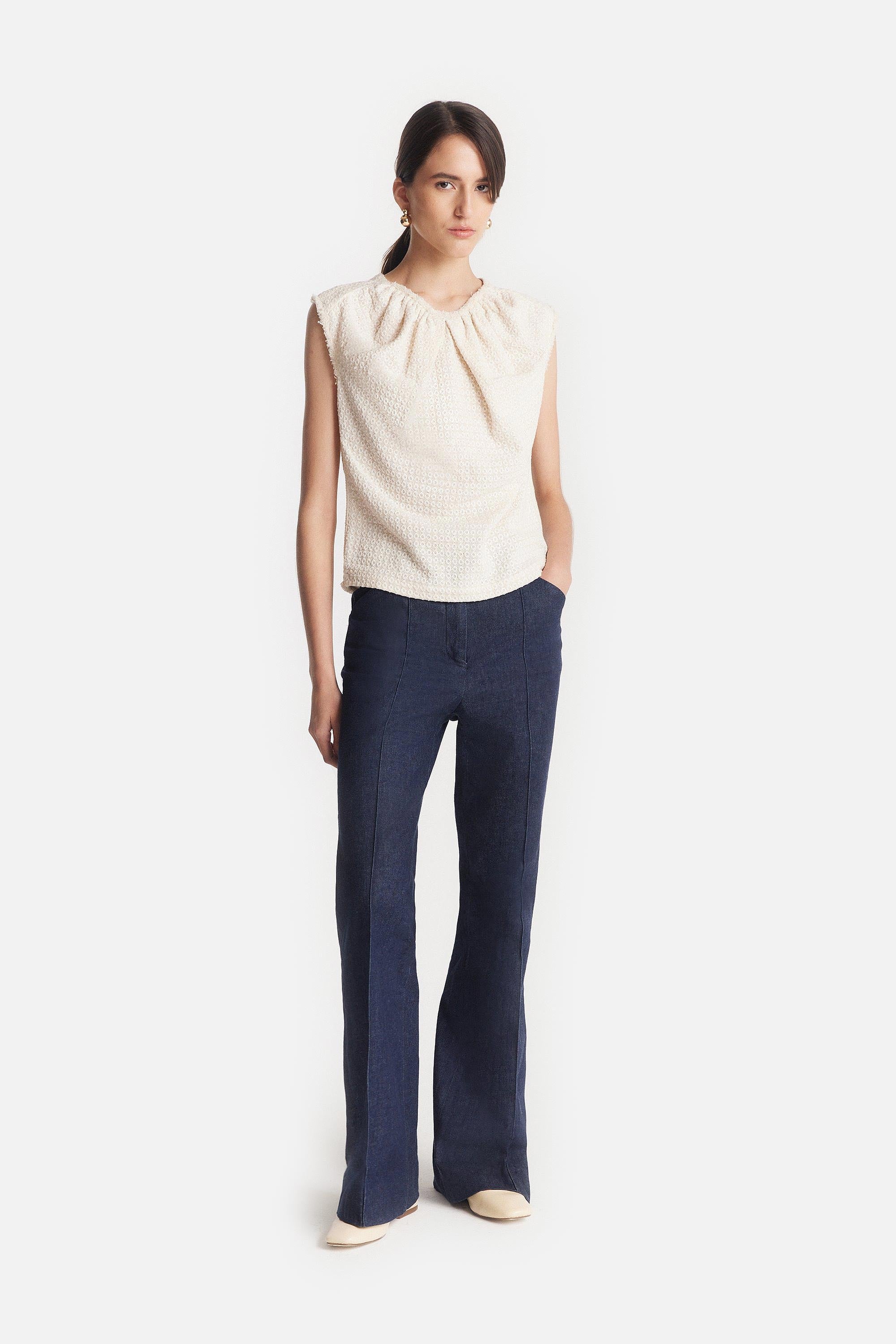 Embroidered Draped Top