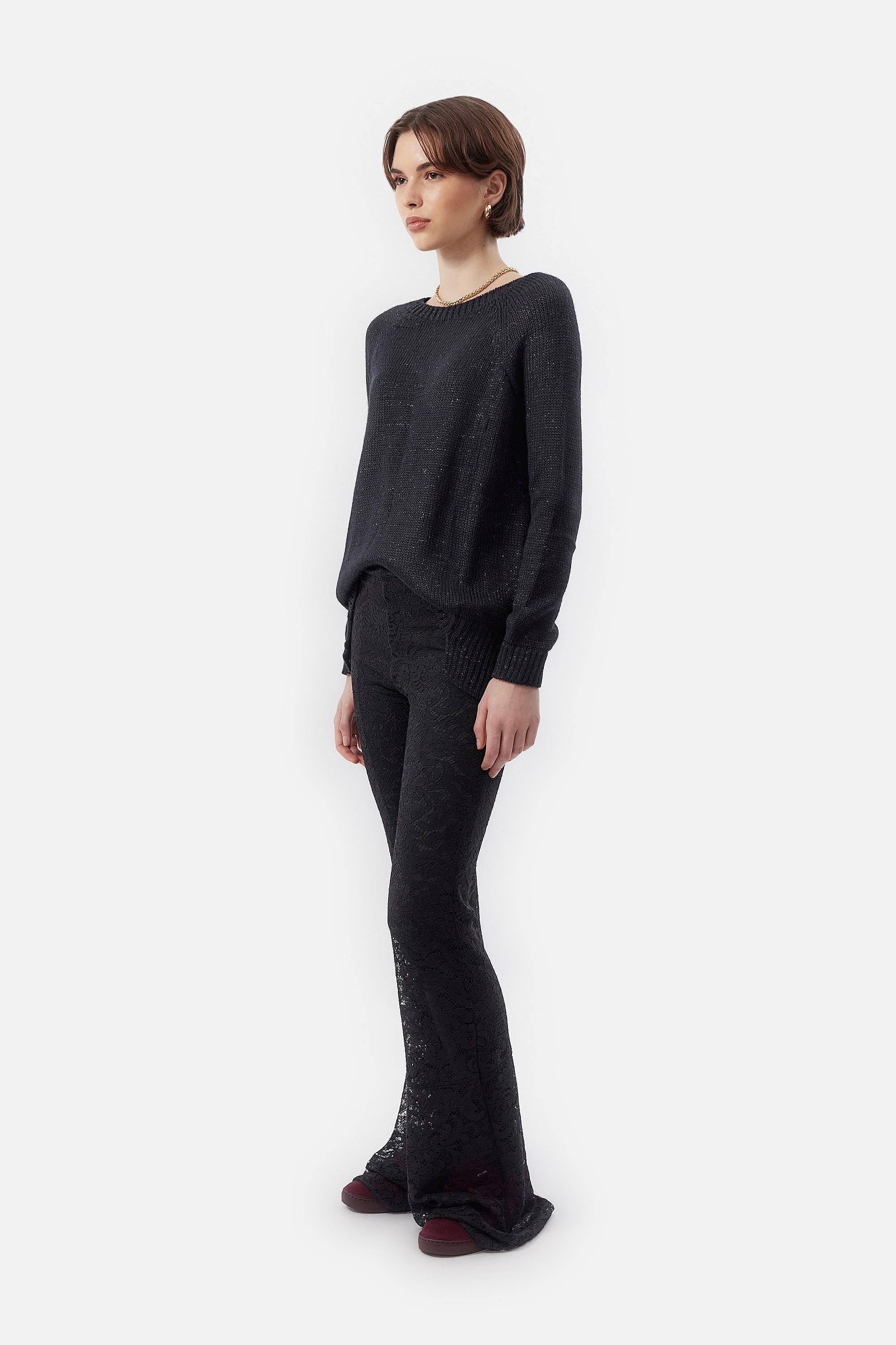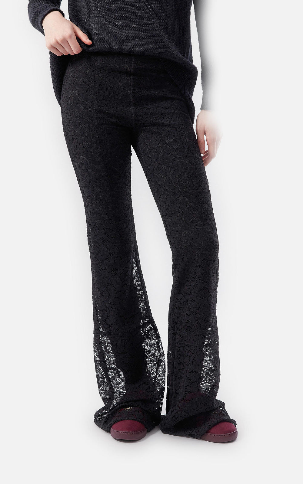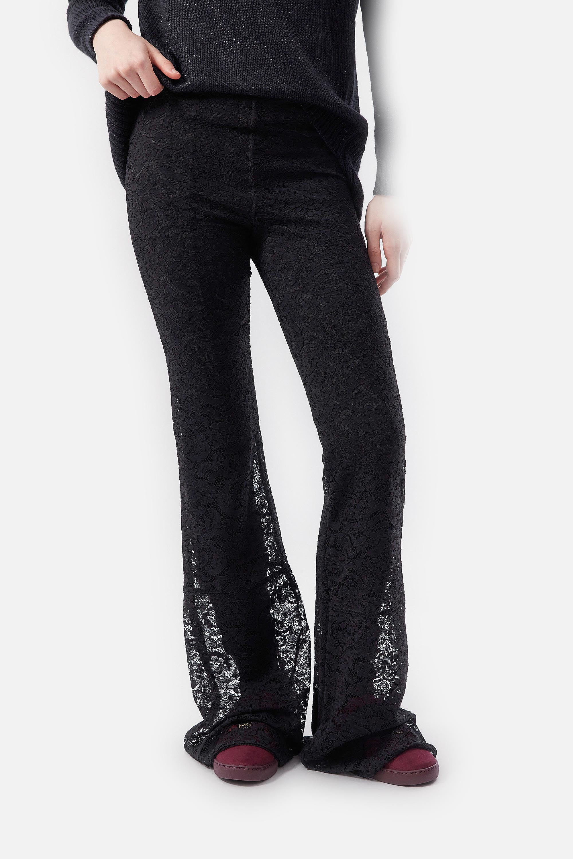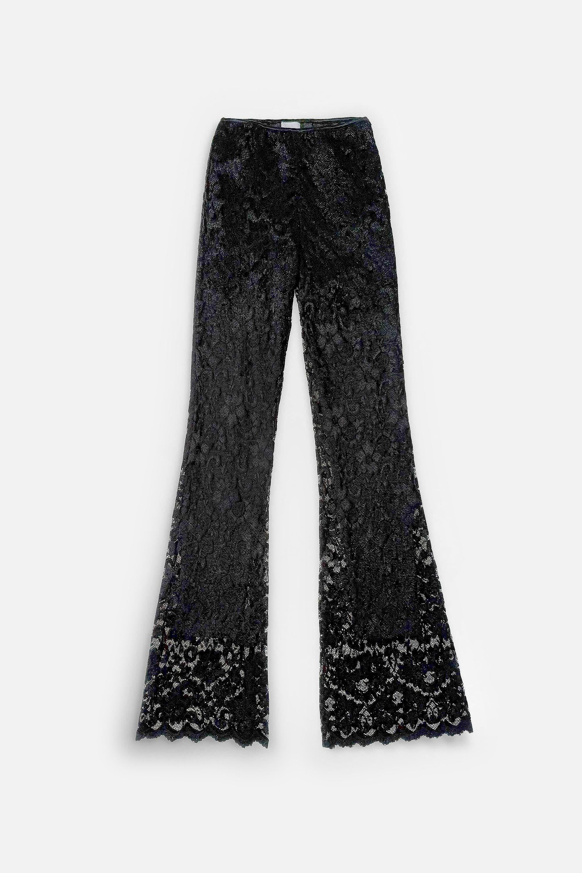 • Legging de encaje floreado francés negro elastizado con legging de punto milano como forrería.