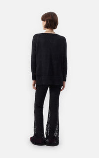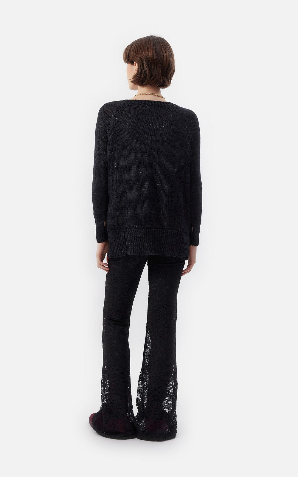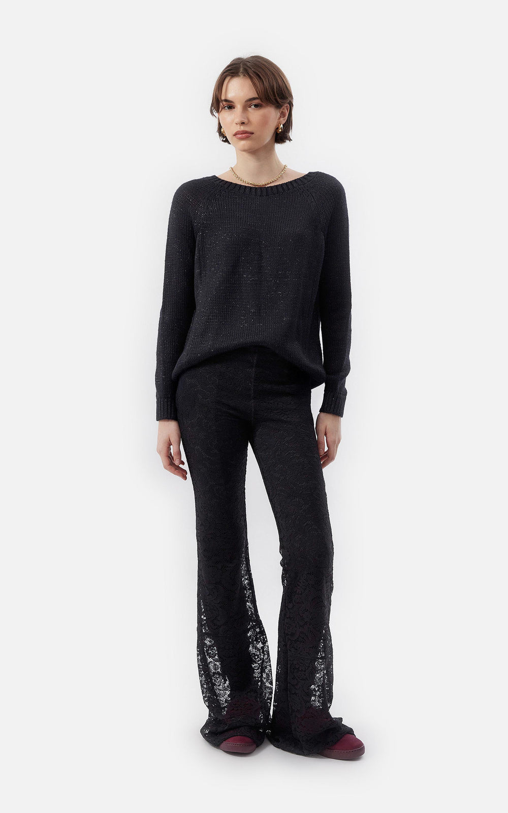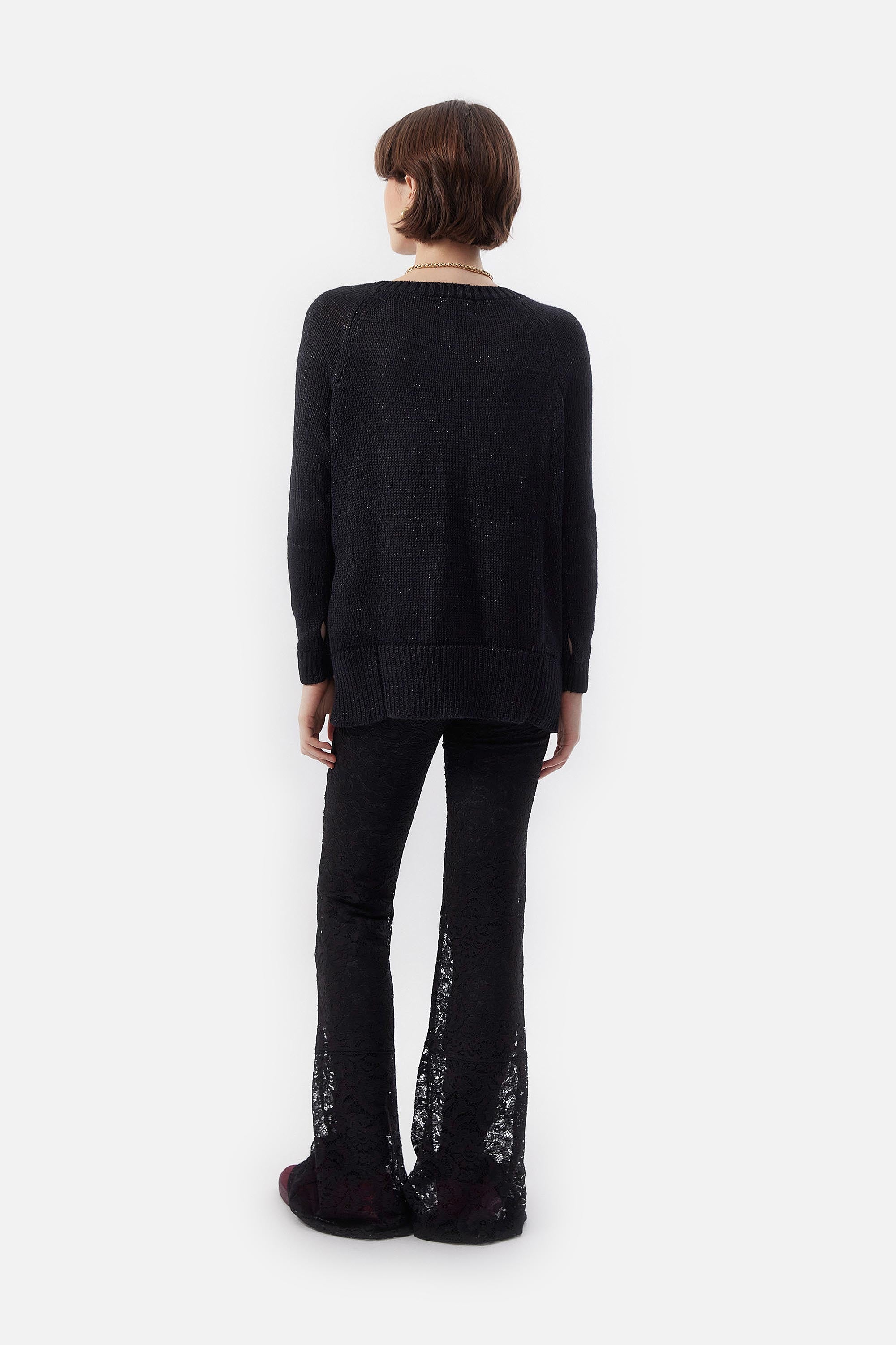 • Legging de encaje floreado francés negro elastizado con legging de punto milano como forrería.