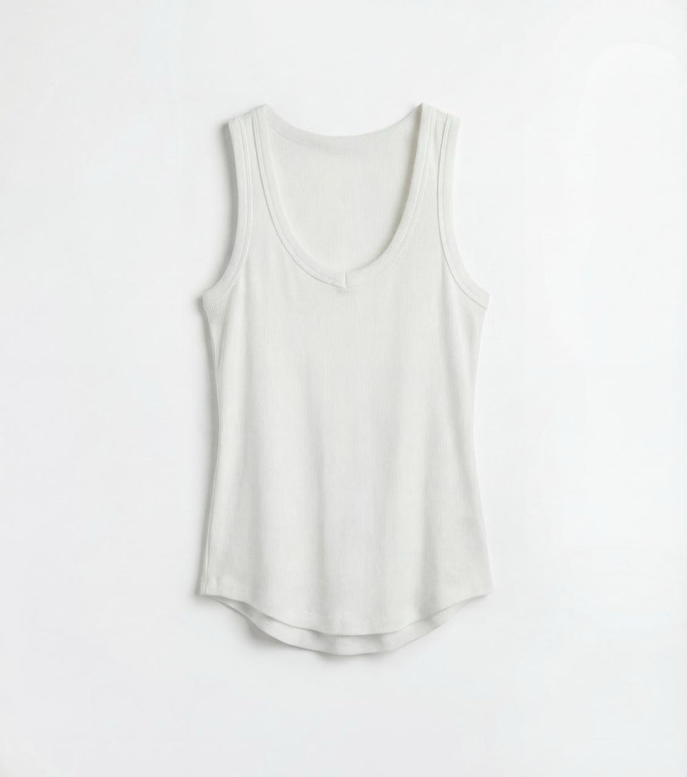 • Musculosa confeccionada en morley de algodón en color blanco.