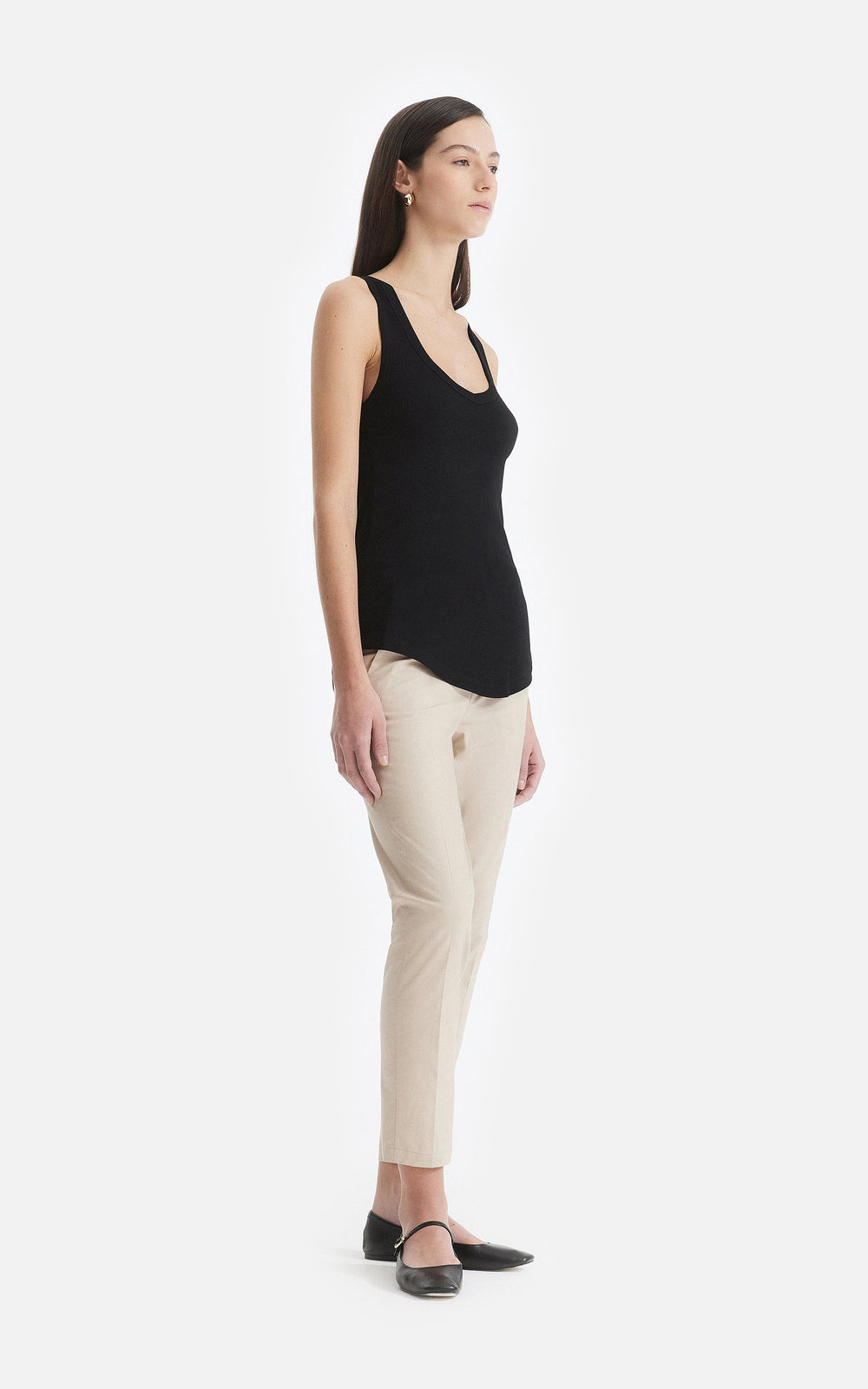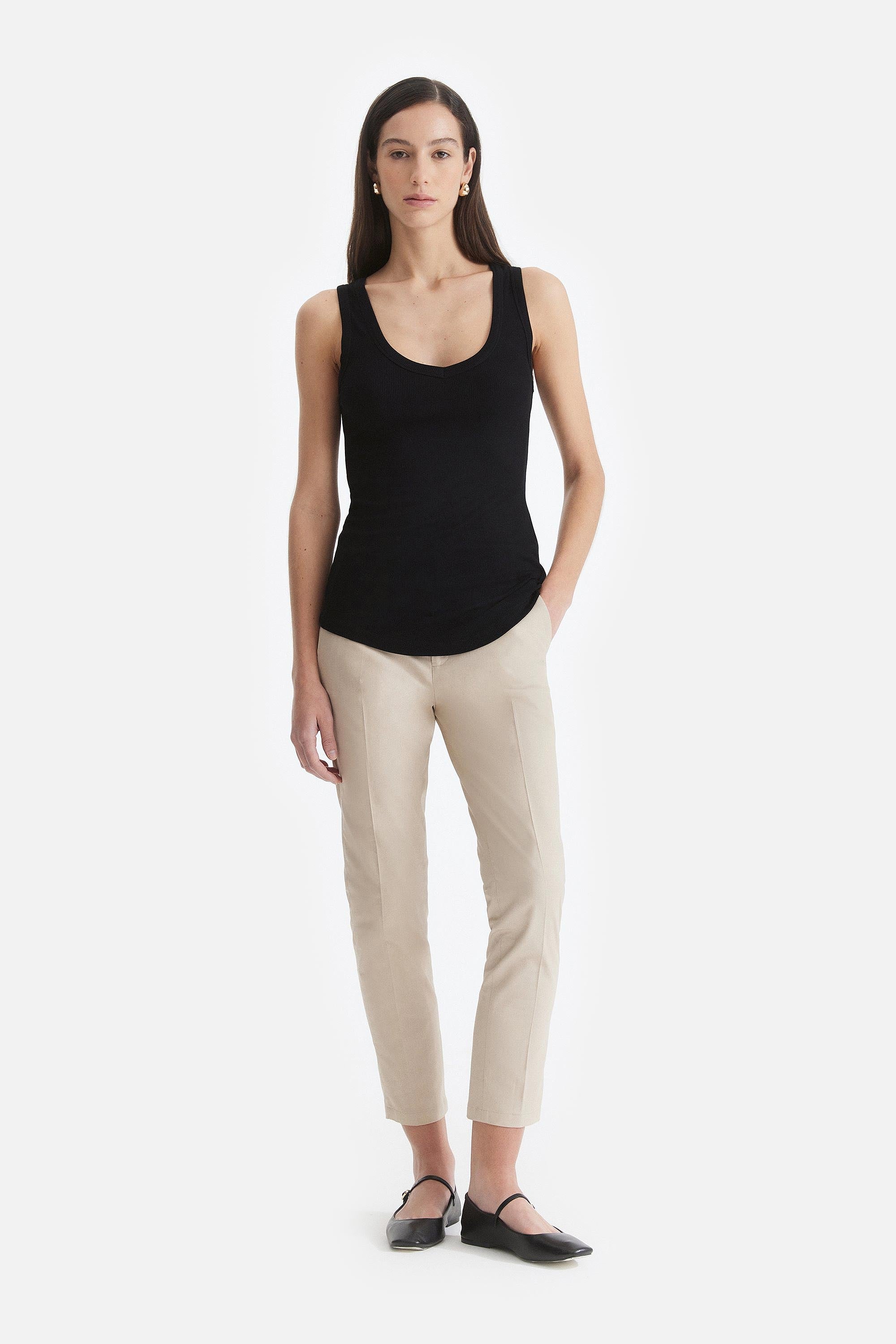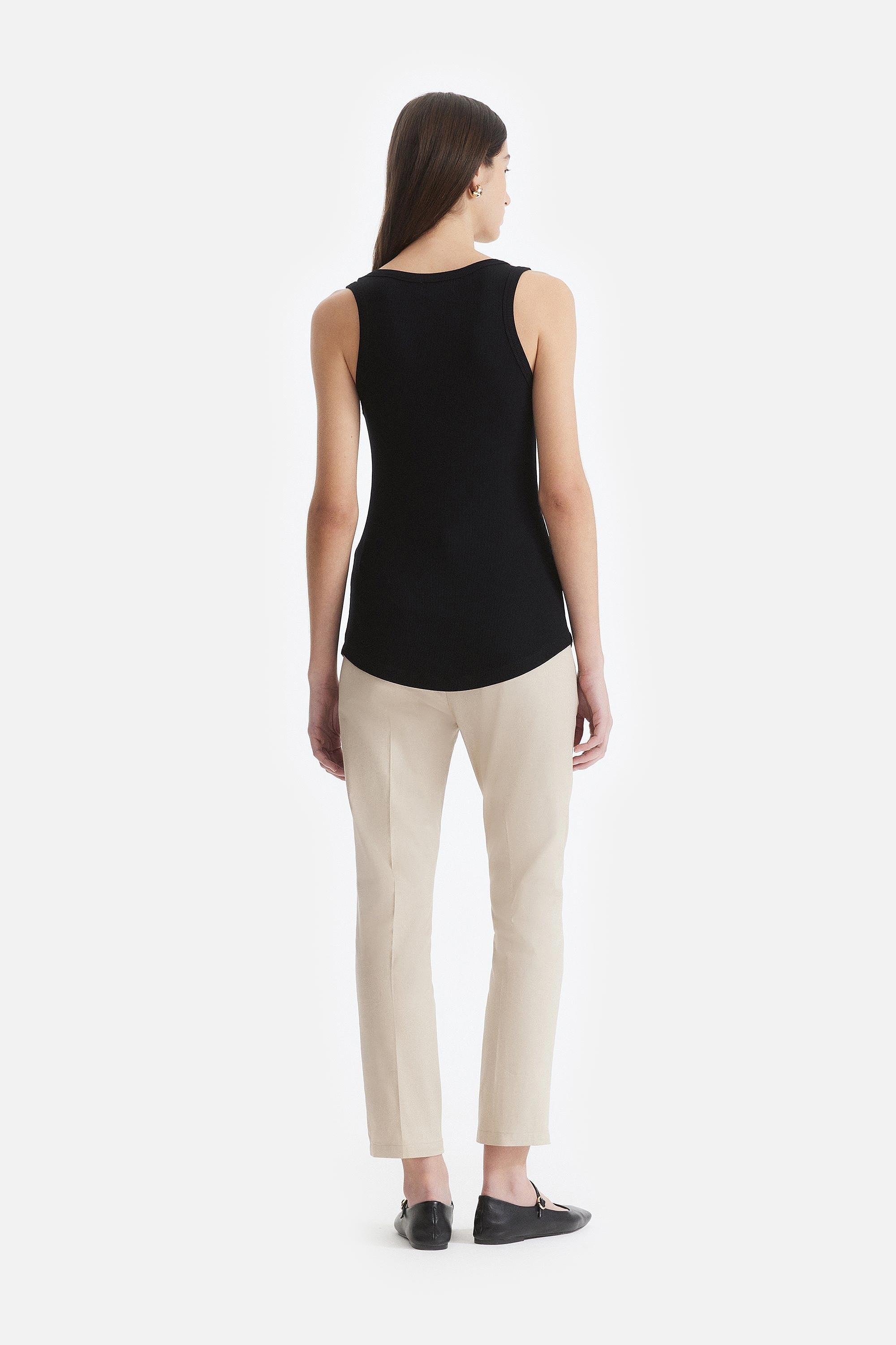 • Musculosa confeccionada en morley de algodón en color negro.