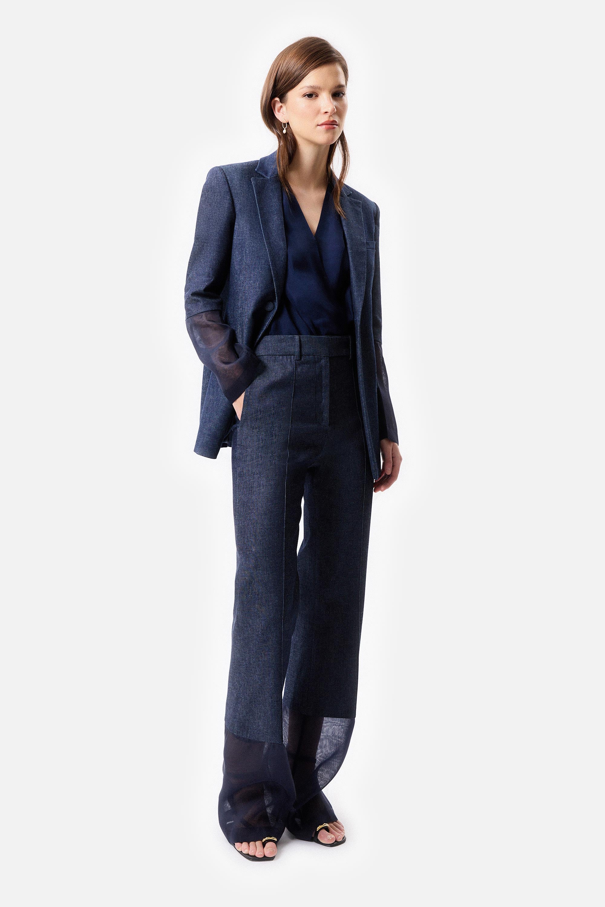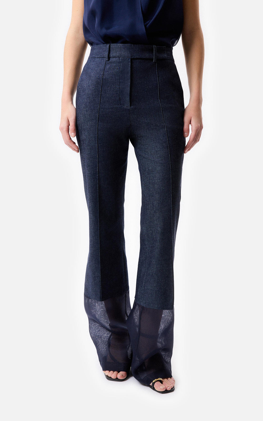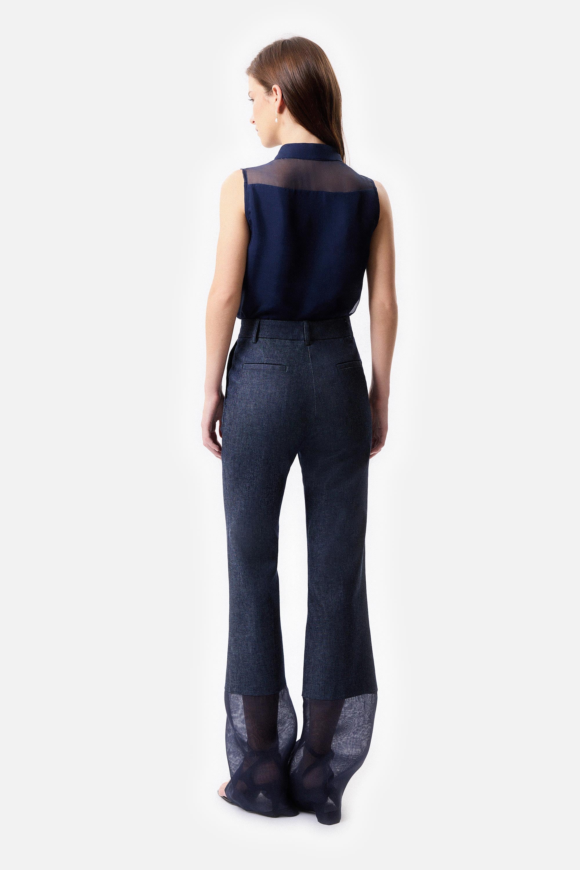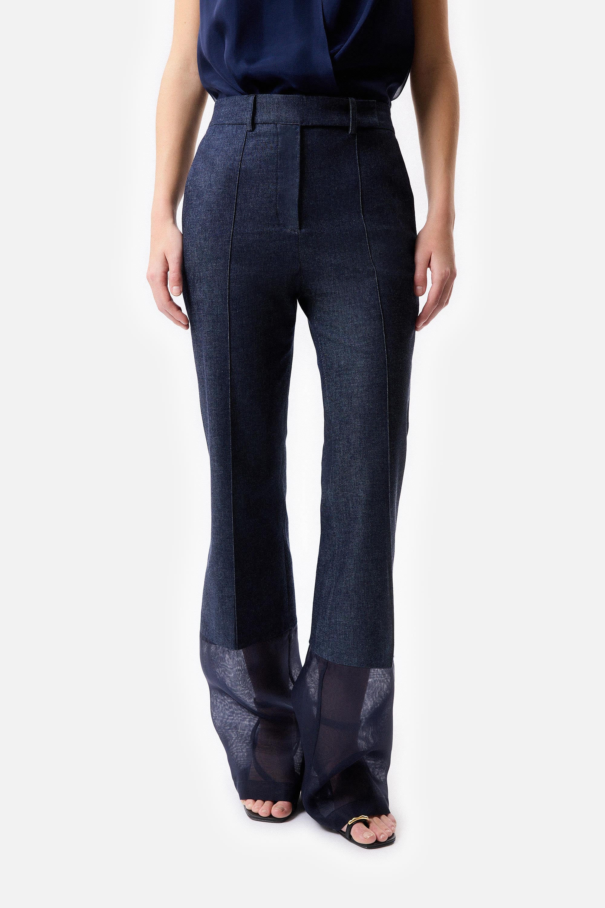 • Pantalón Campana de Denim y Organza