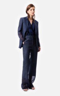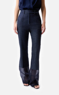 Pantalón Campana de Denim y Organza