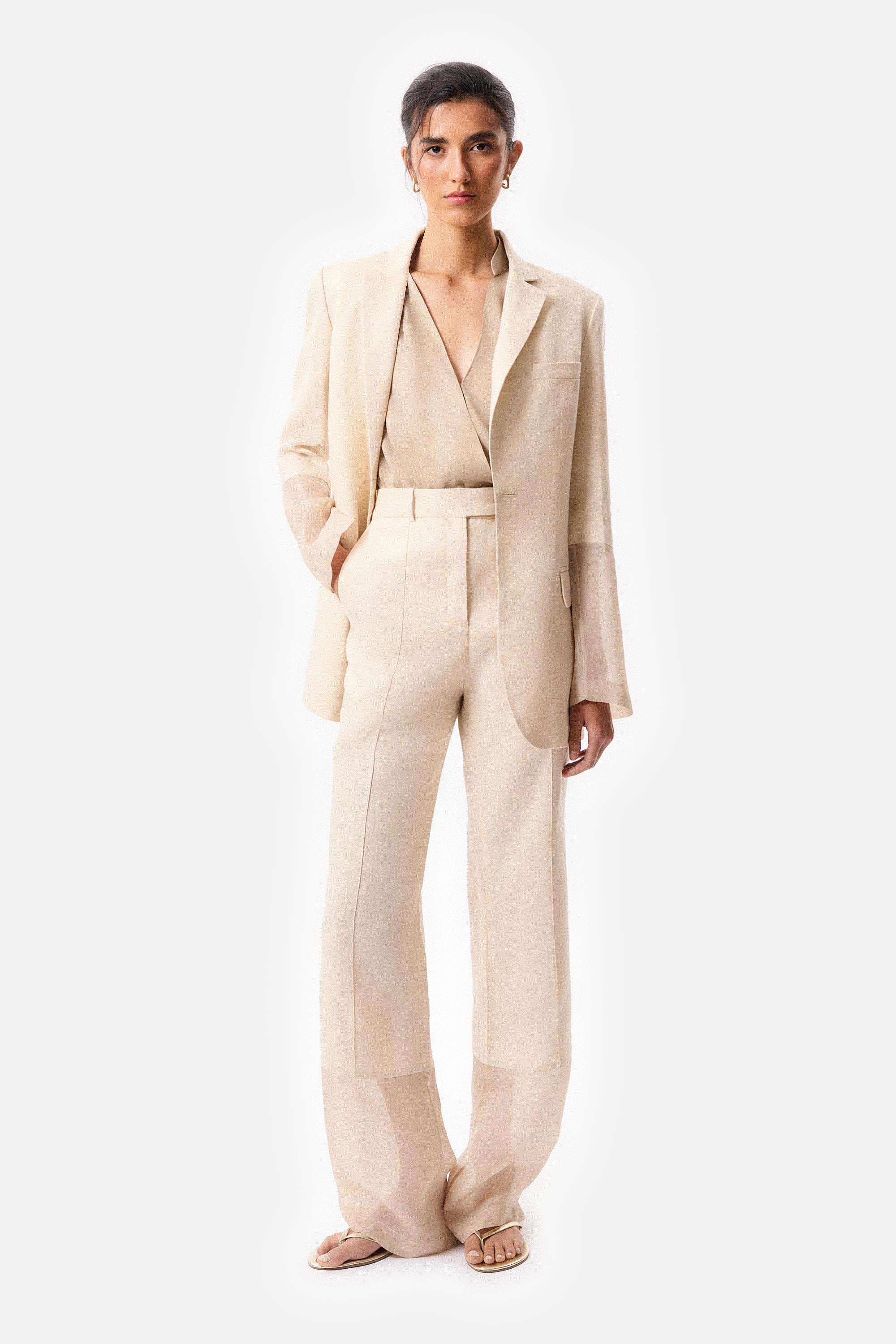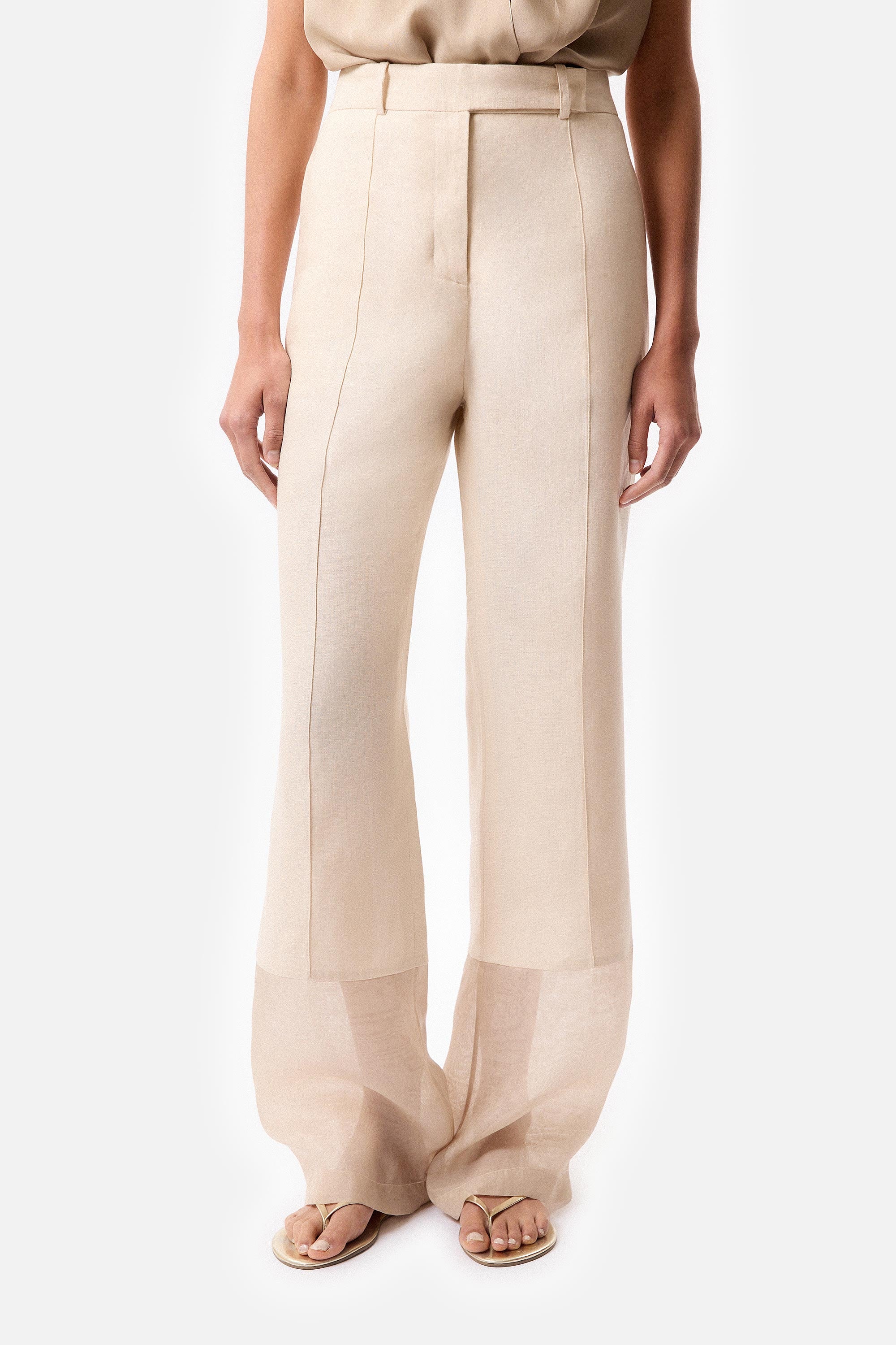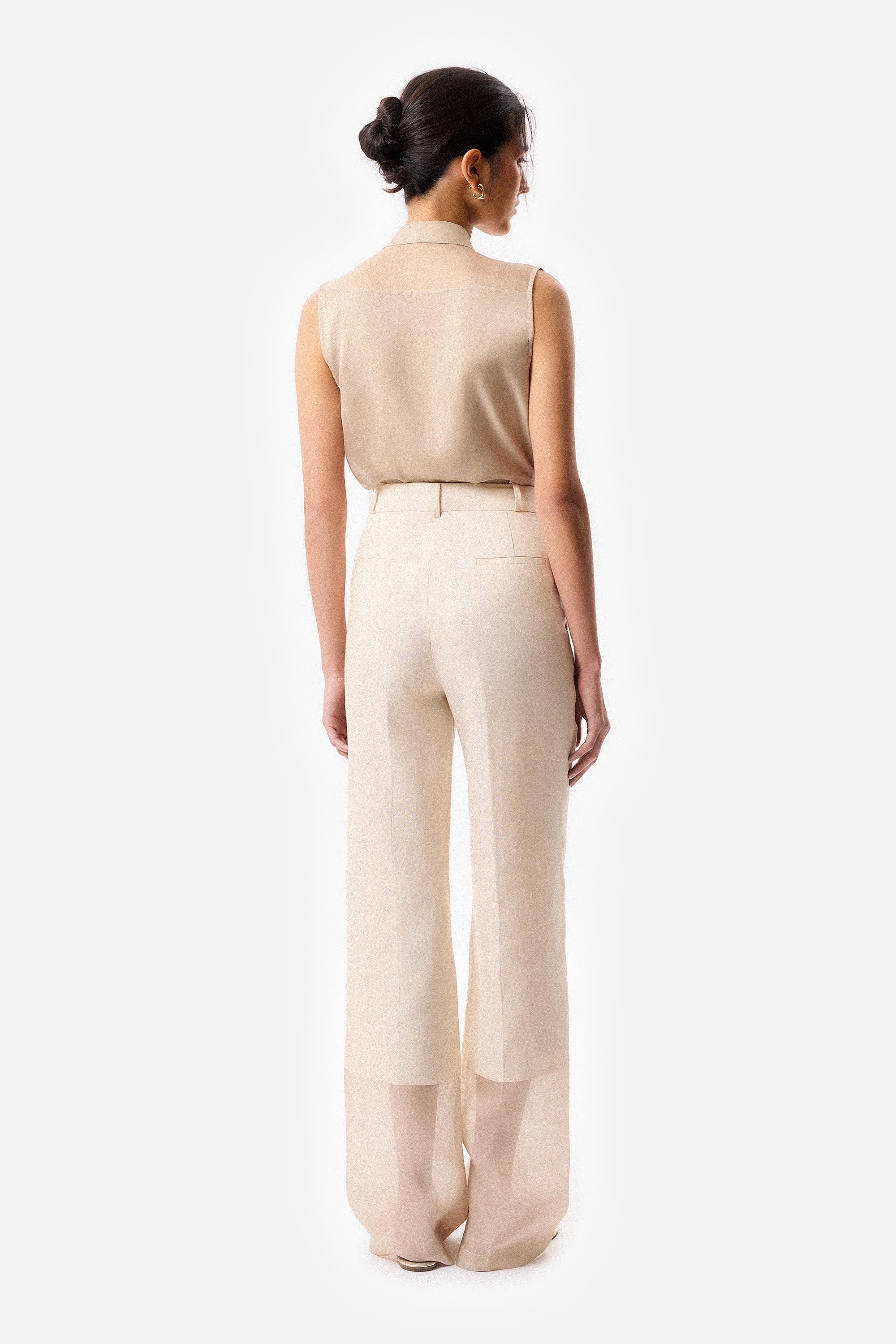 Pantalón Campana de Lino y Organza