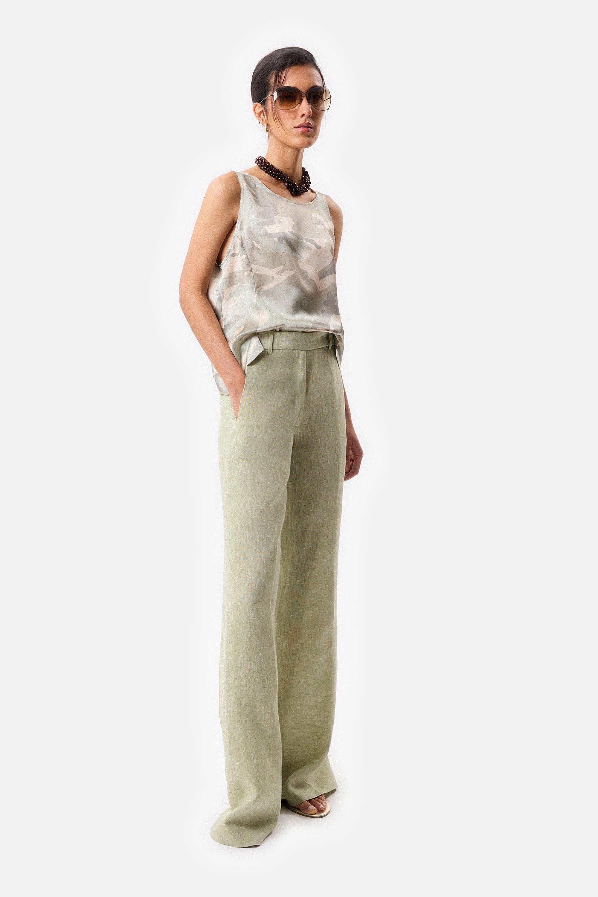 • Composición: 100% Lino , forrado en satén 96% poliéster 4% elastano.