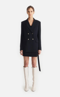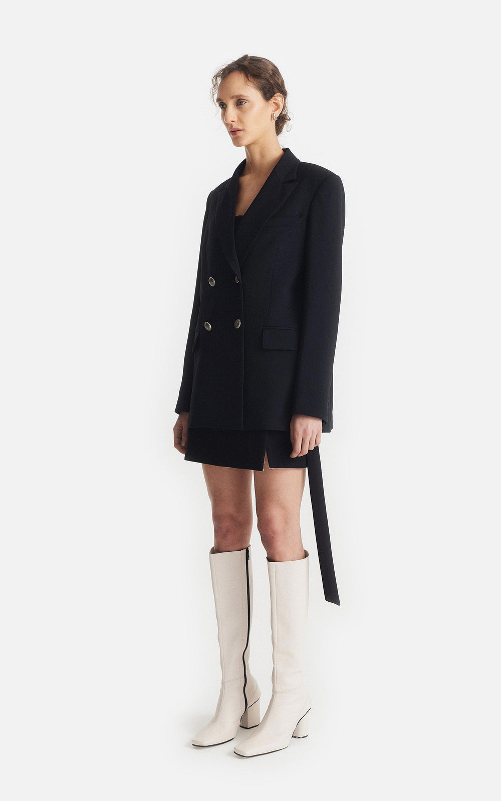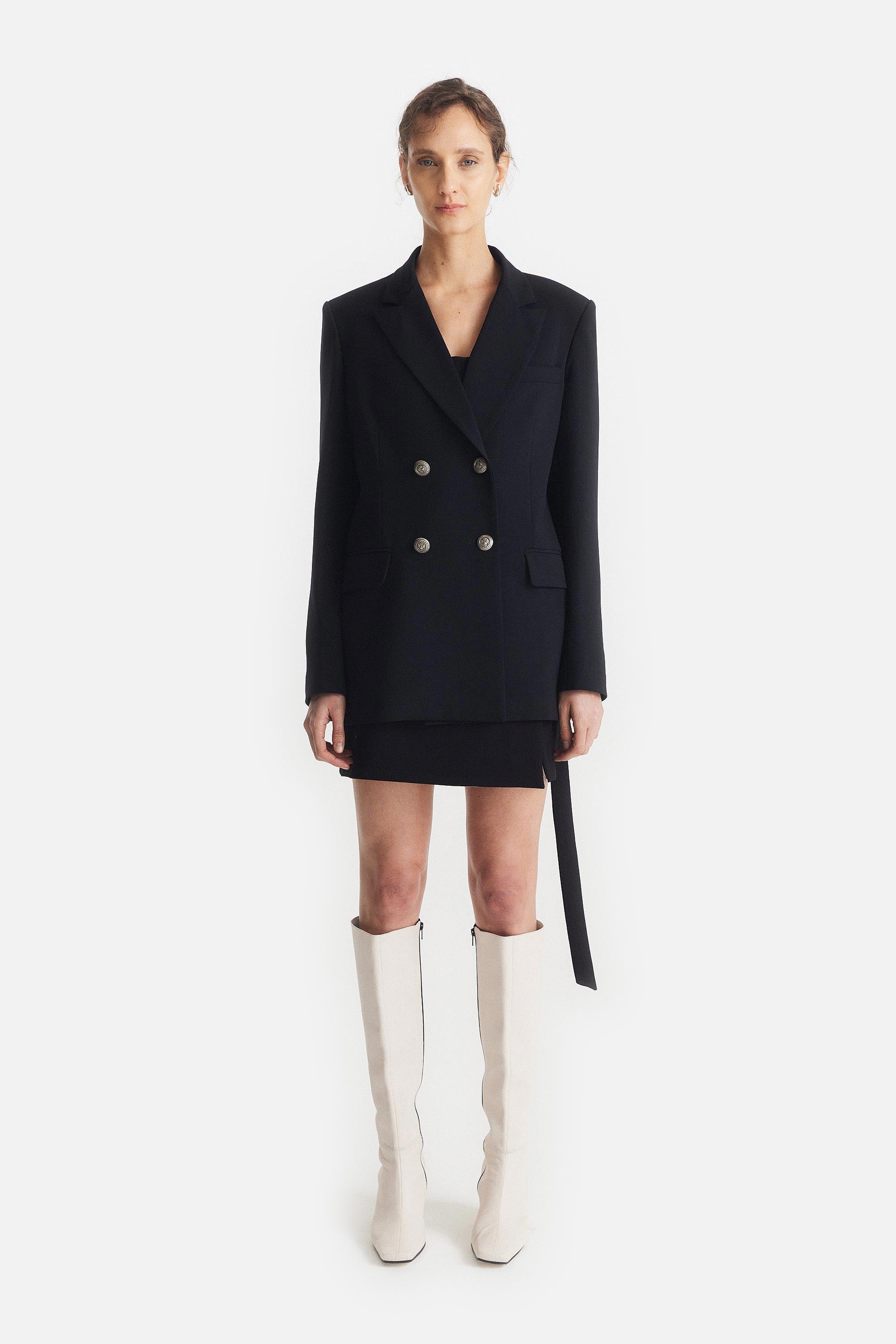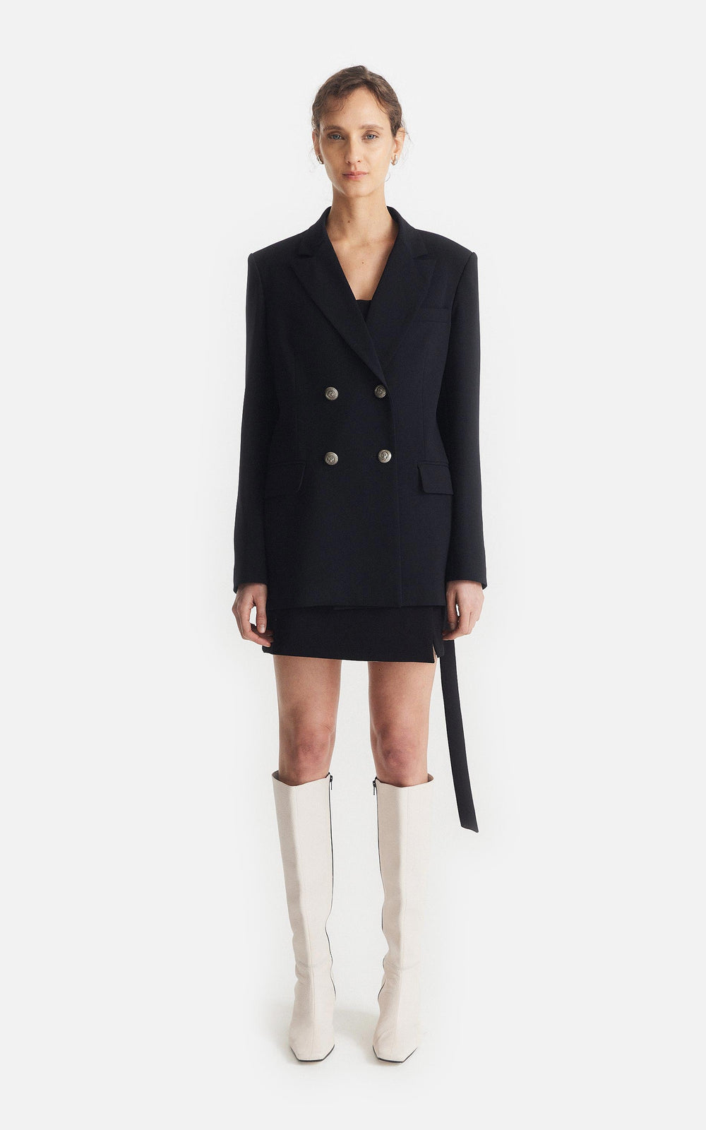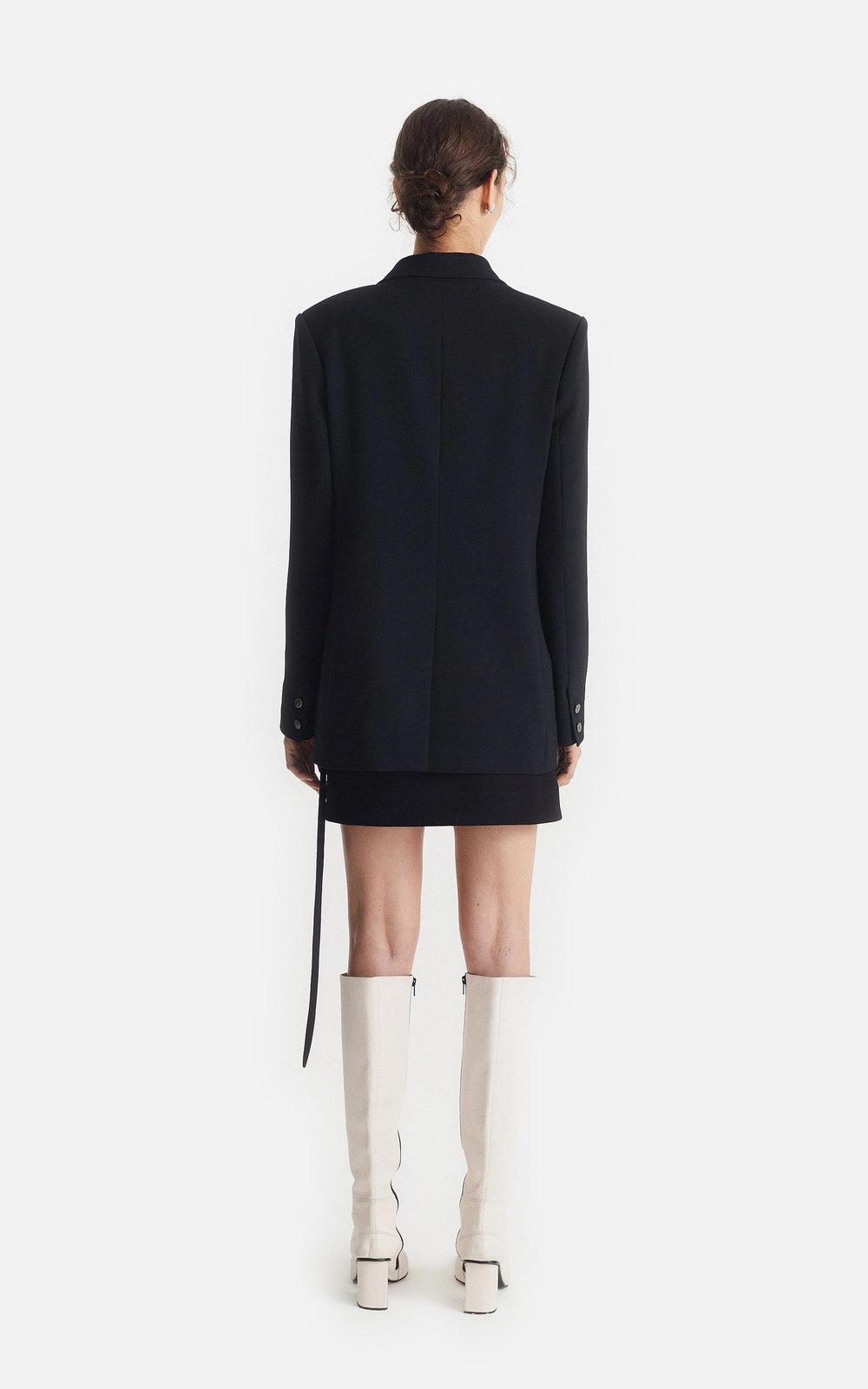 • Saco cruzado de crepe francés negro forrado en alpaseda.