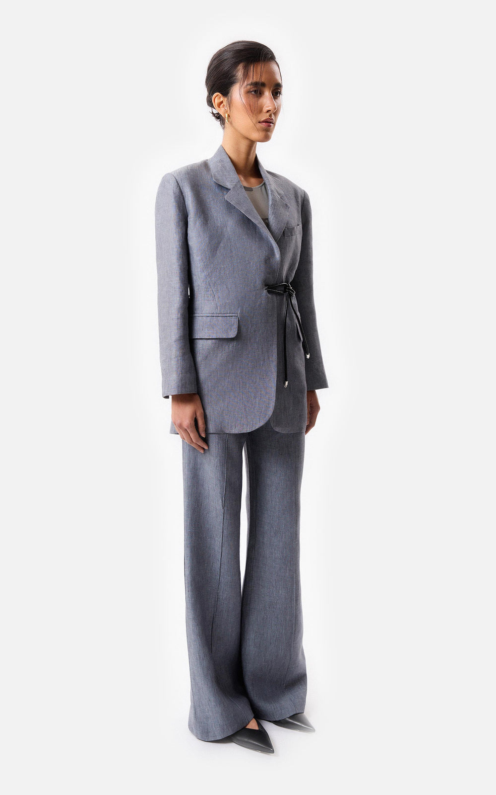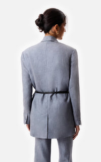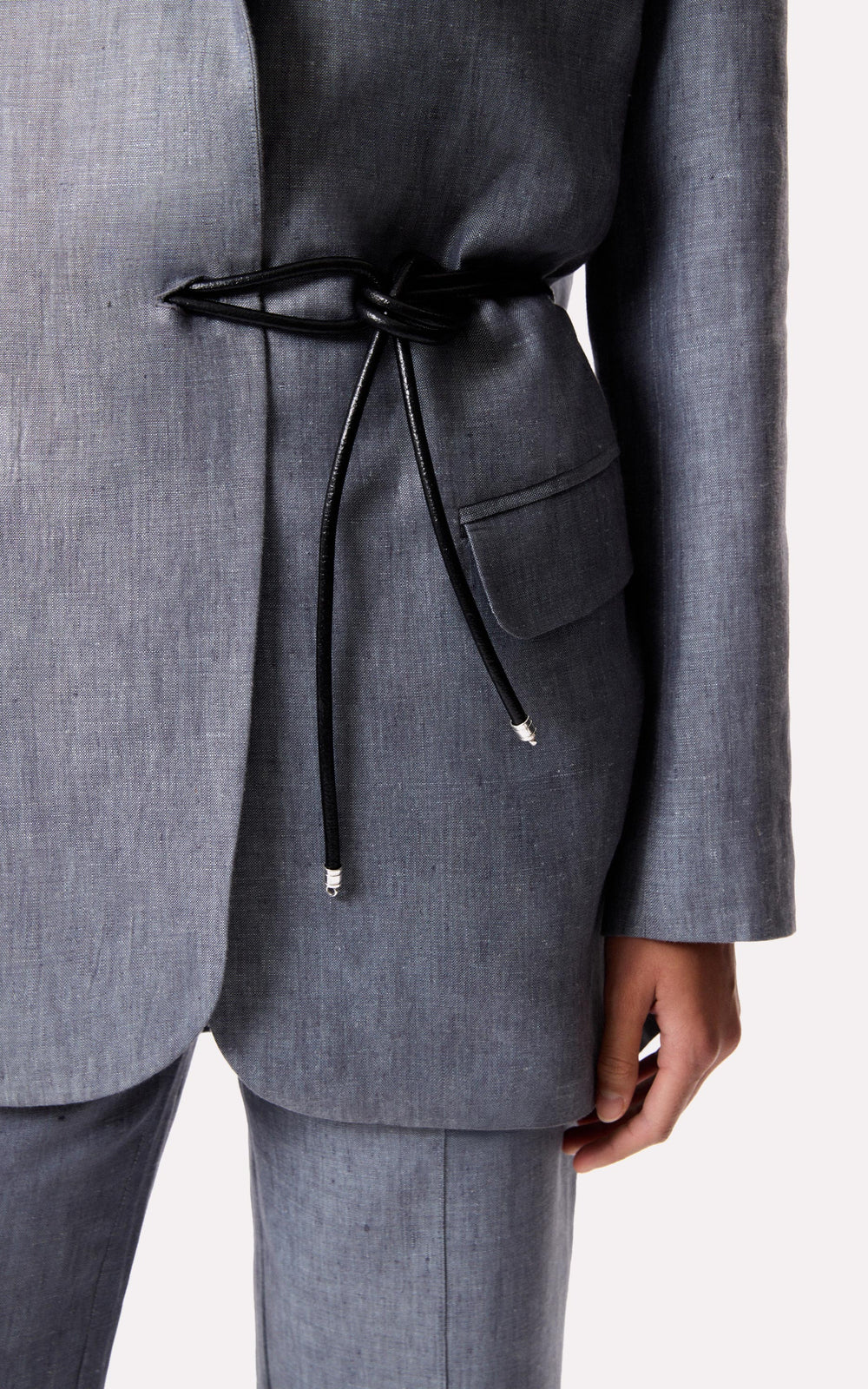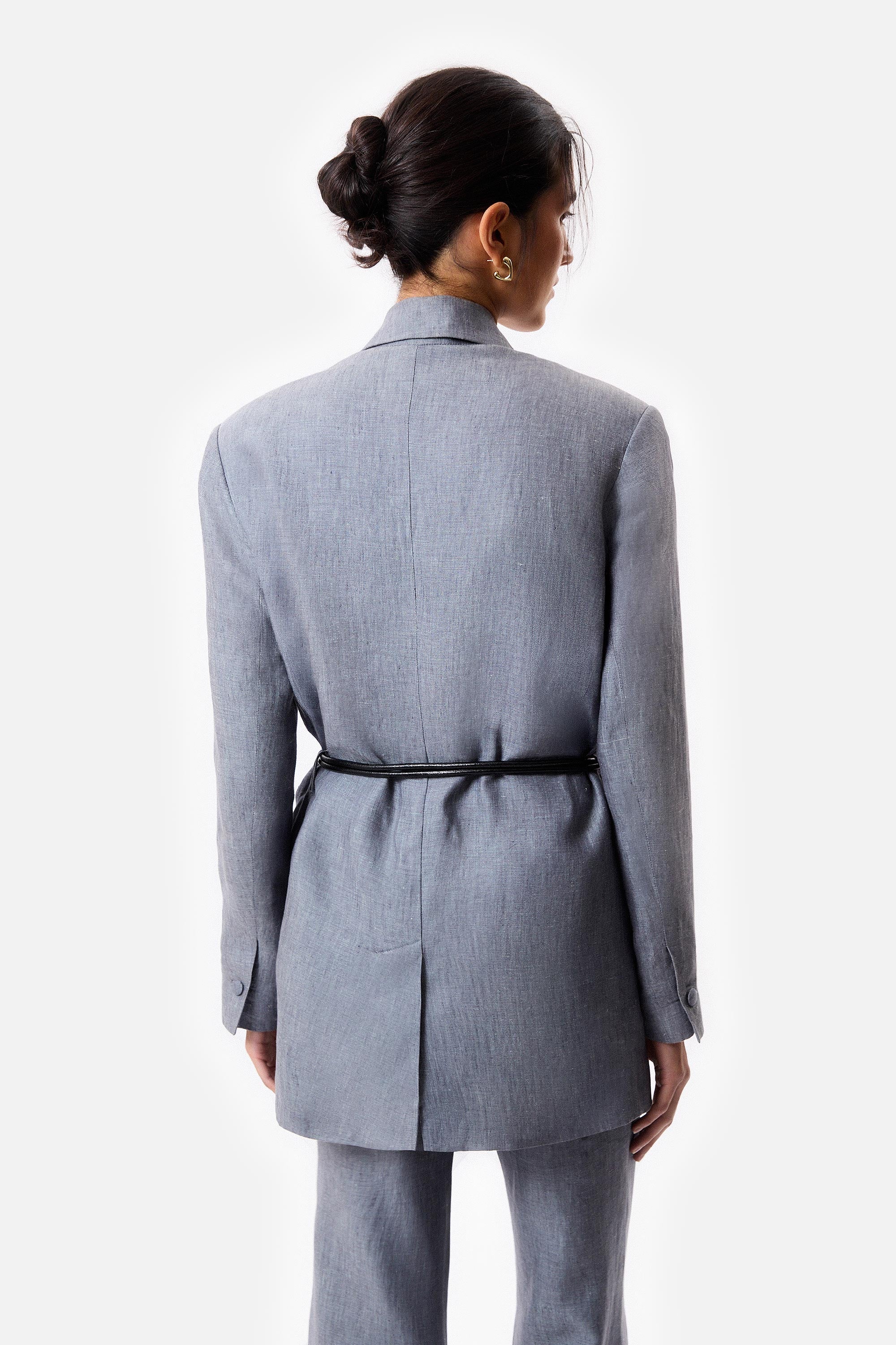 • Sacón oversized con cinturón de cuero, el mismo tiene una terminación metálica.