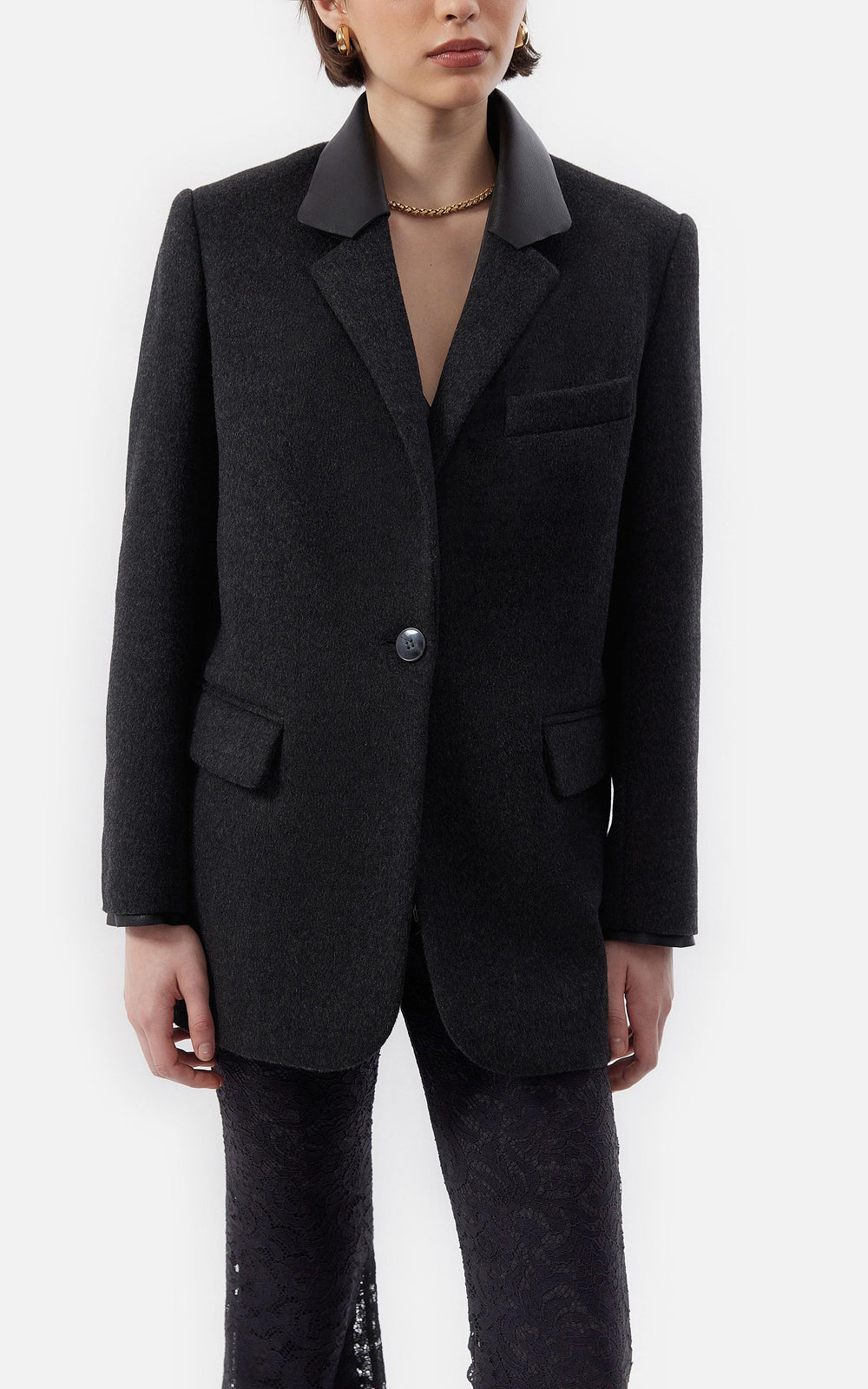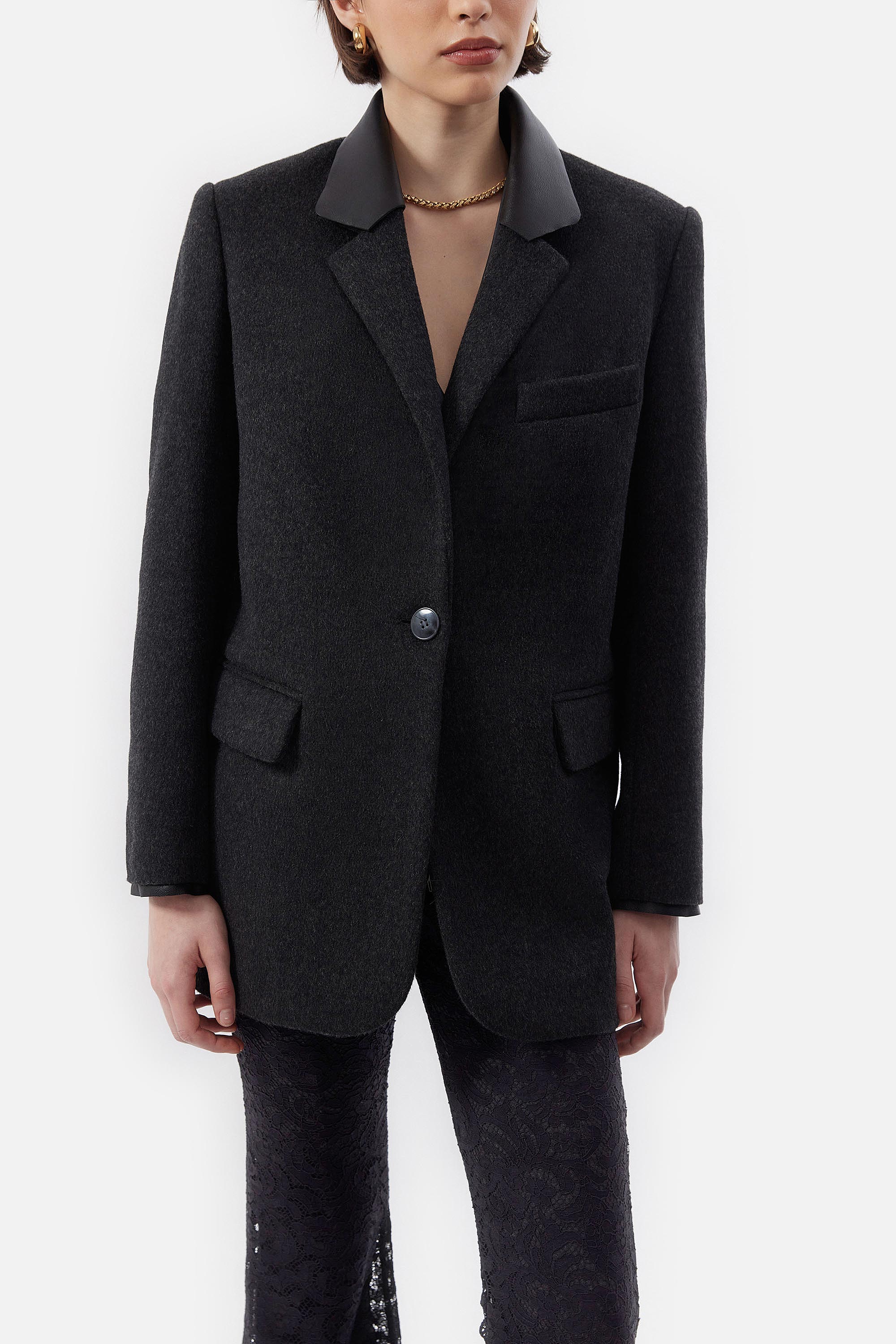 • Sacon Oversized de Paño y Cuero