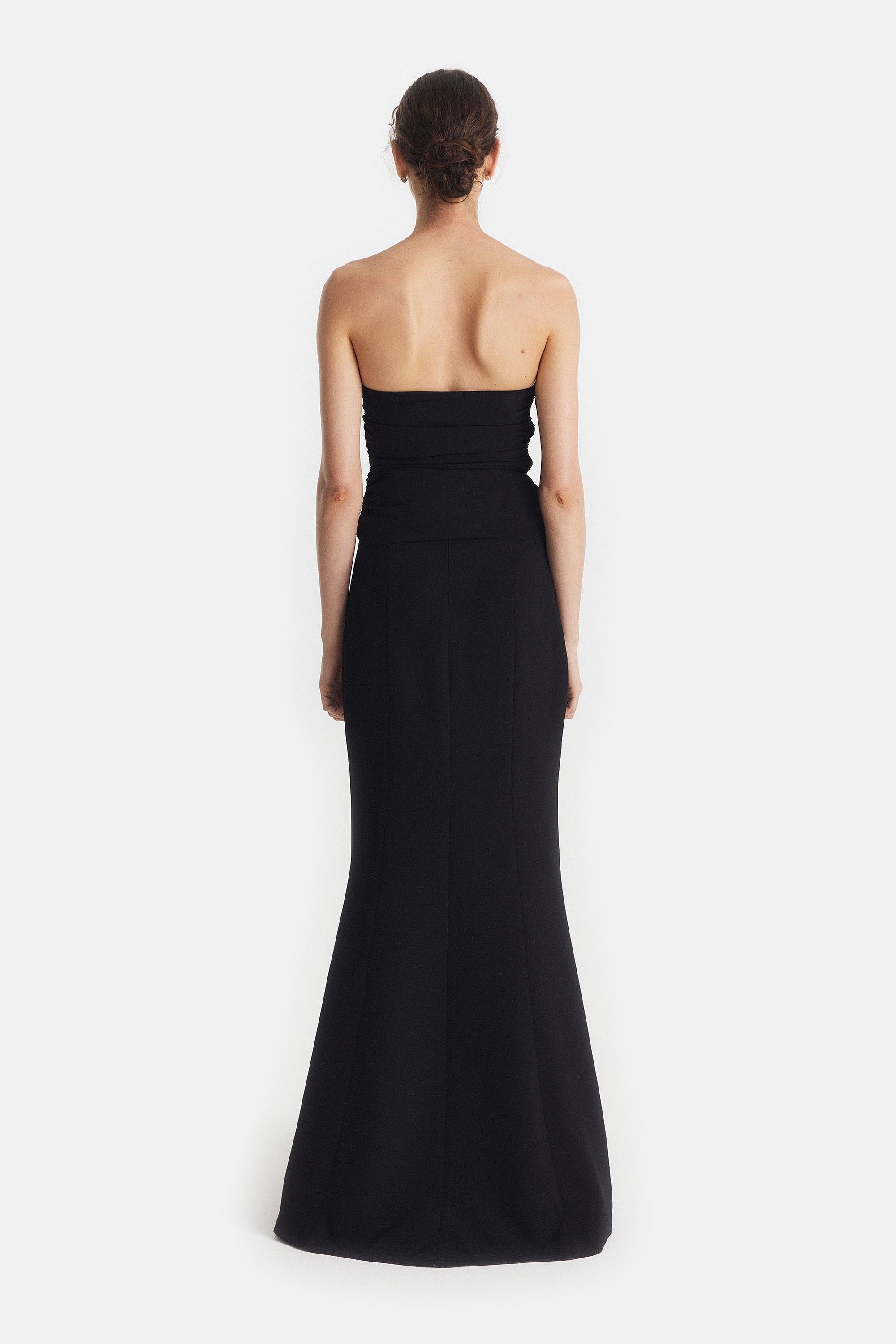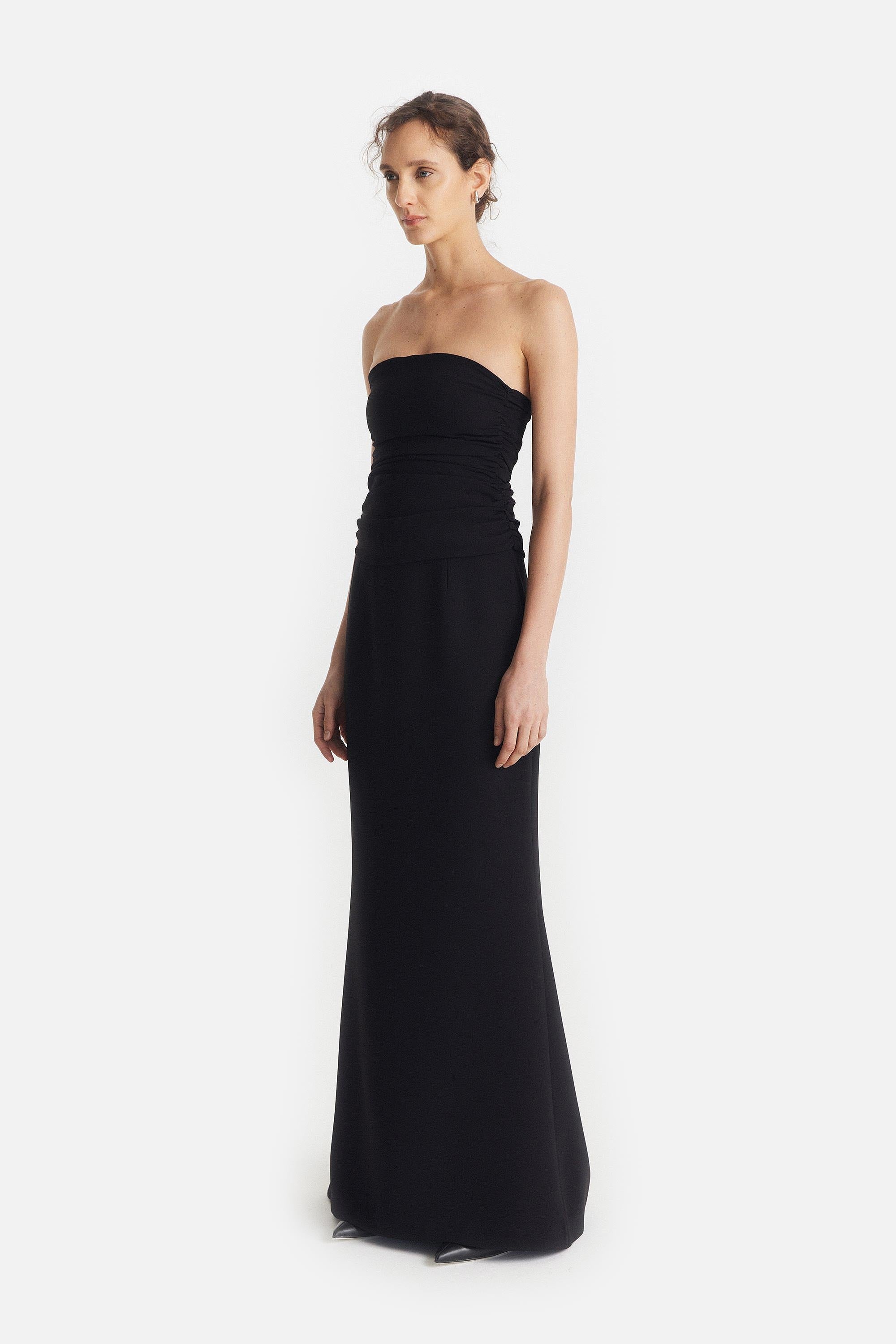 • Strapless Drapeado de Crepe Fluido